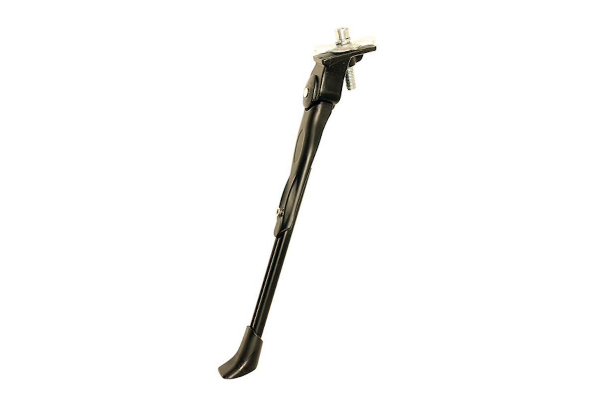 Se monta de forma central, junto a la caja de pedalier, lo que proporciona un punto de apoyo estable que ayuda a mantener la bici en equilibrio al aparcar. La pata ajustable cubre un rango muy amplio, desde ruedas de 16" hasta 700C, por lo que es adecuada tanto para bicicletas infantiles y juveniles como para bicis urbanas y de trekking de adulto.