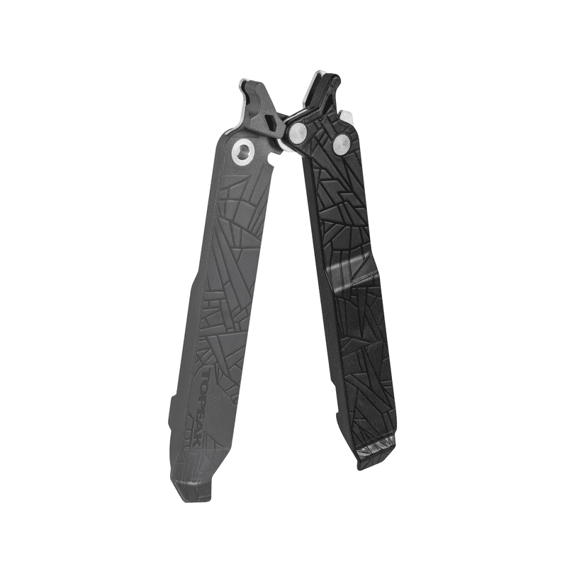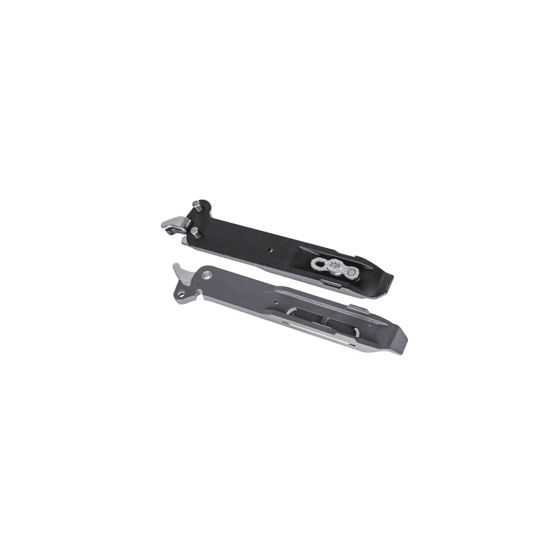 Dos piezas se conectan para formar unos alicates de alta resistencia. Permite instalar o desmontar todo tipo de eslabones maestros. El gancho de cadena integrado evita que la ésta se separe al instalar o desmontar los eslabones. La herramienta se separa para usarse como dos desmontables para reparaciones rápidas de pinchazos y también cuenta con una herramienta de núcleo Presta para quitar núcleos de válvulas.