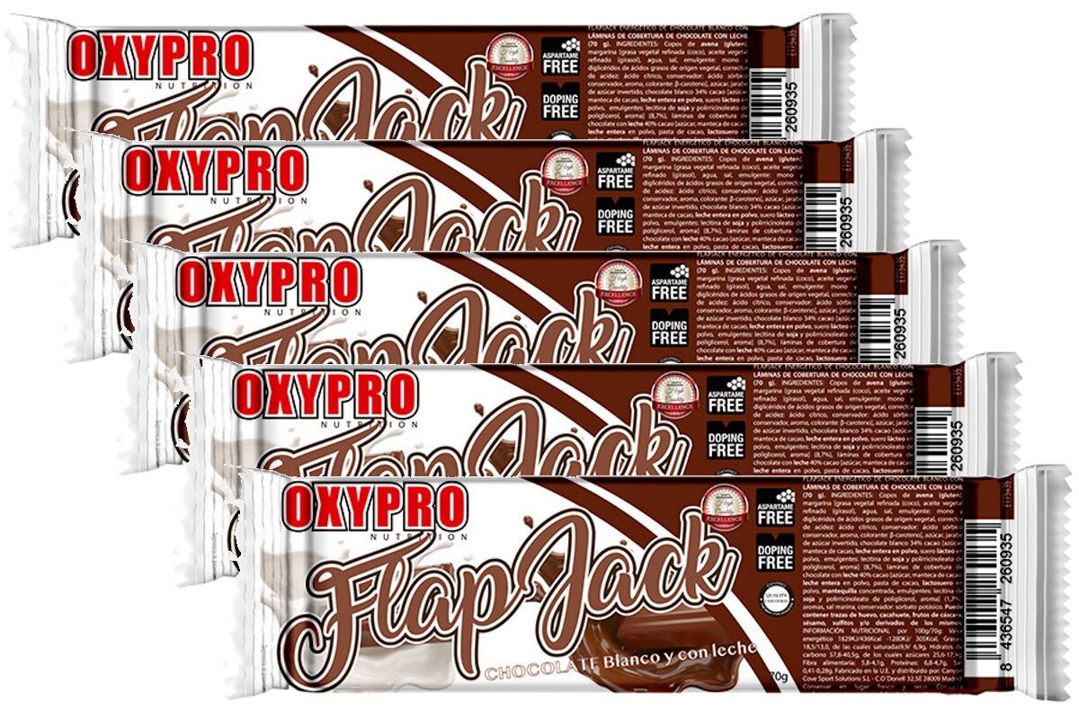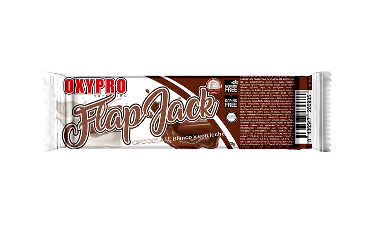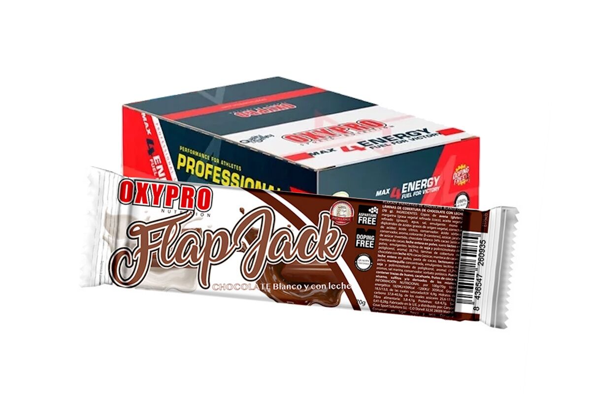 Barrita de avena OXIPRO – FLAP JACK – Chocolate blanco y con leche