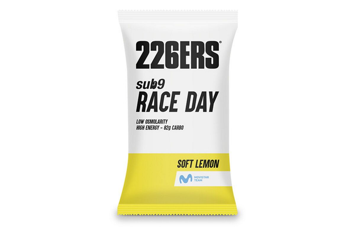 SUB9 RACE DAY es actualmente la bebida energética que más carbohidratos aporta por toma. Para poder asimilar sus 82g de hidratos de carbono y sus 332 kcal se ha trabajado en conseguir una bebida con baja osmolaridad utilizando como ingredientes principales la Ciclodextrina y la Palatinosa, unos carbohidratos de última generación que mejoran la reposición de glucógeno de manera más eficiente: