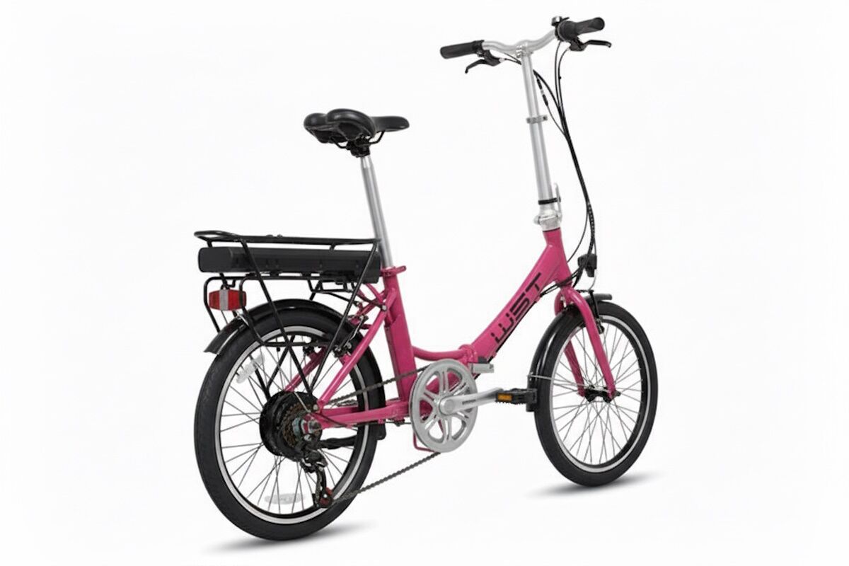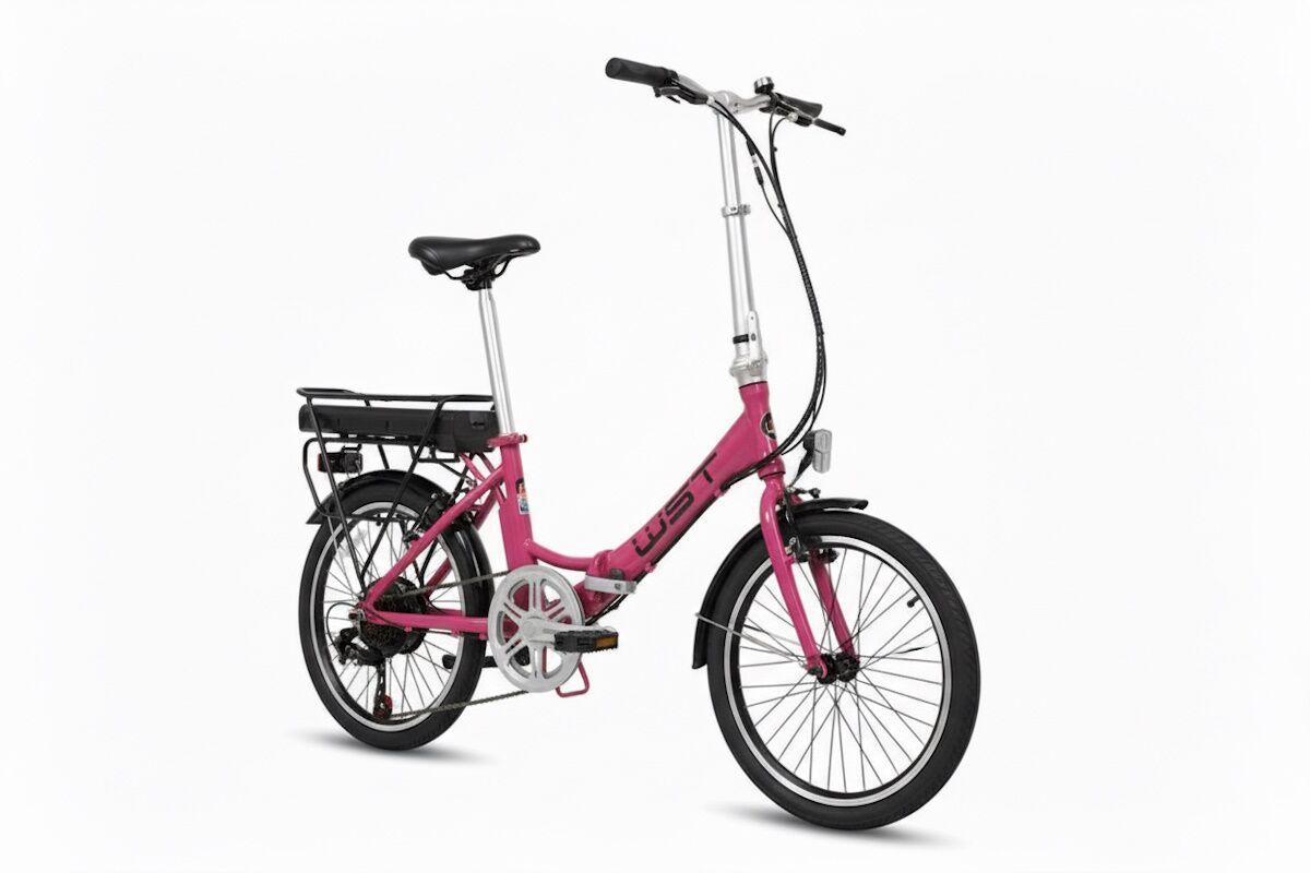 La WST E‑Bike 20″ plegable 6 velocidades es una solución práctica para quienes quieren moverse por la ciudad sin esfuerzo y con facilidad para guardar la bici en casa, oficina o transporte público. Su cuadro de aluminio plegable y el manillar abatible permiten reducir al máximo el espacio ocupado, manteniendo una estructura robusta y estable.