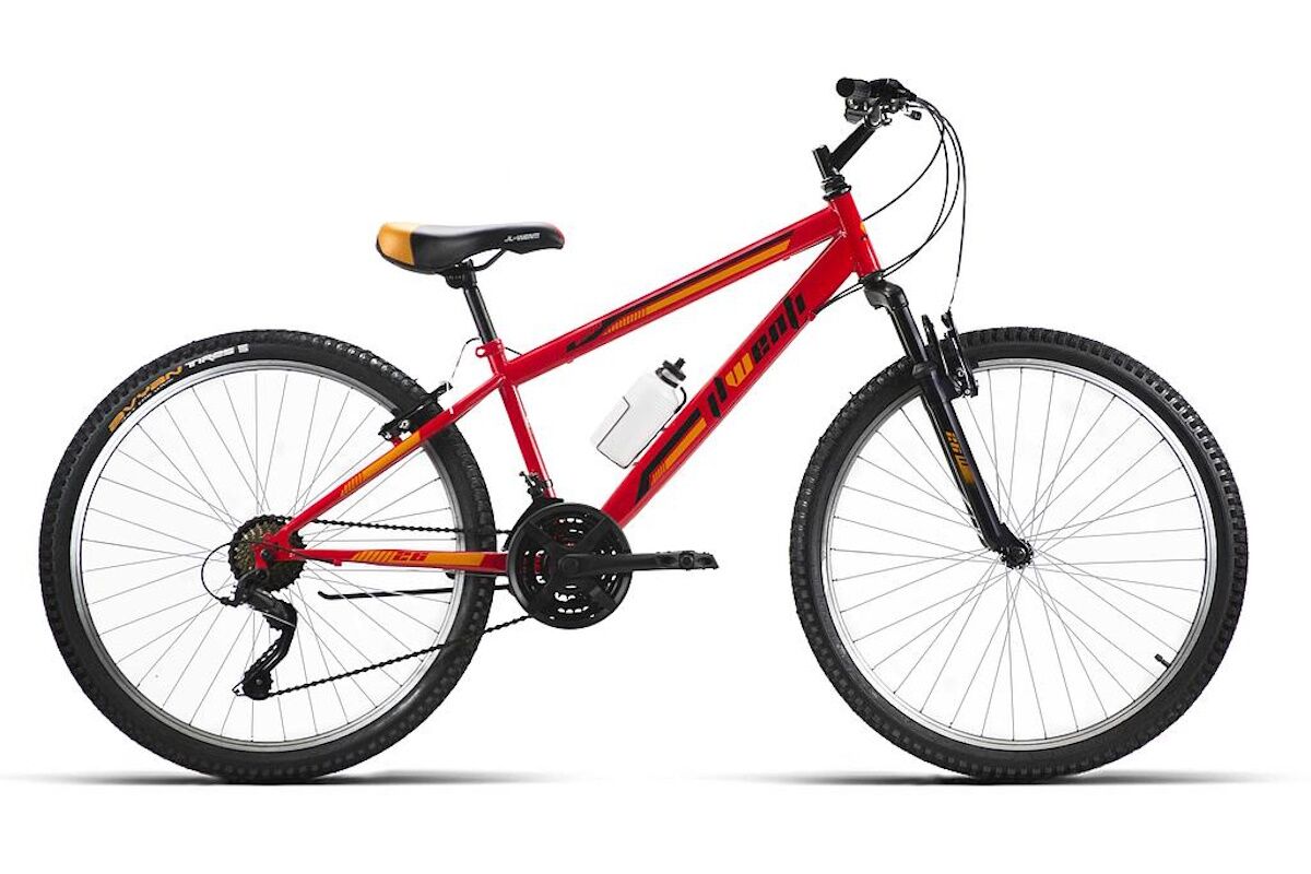 - B300 MTB: Bicicleta 26" con barra alta tipo MTB, cuadro de acero ECO y 18 velocidades por fricción. V‑brake de aluminio, manetas de aluminio, ruedas de aluminio interior negro y potencia 25.4. Colores: Amarillo, Rojo y Verde. Robusta para ciudad y caminos suaves