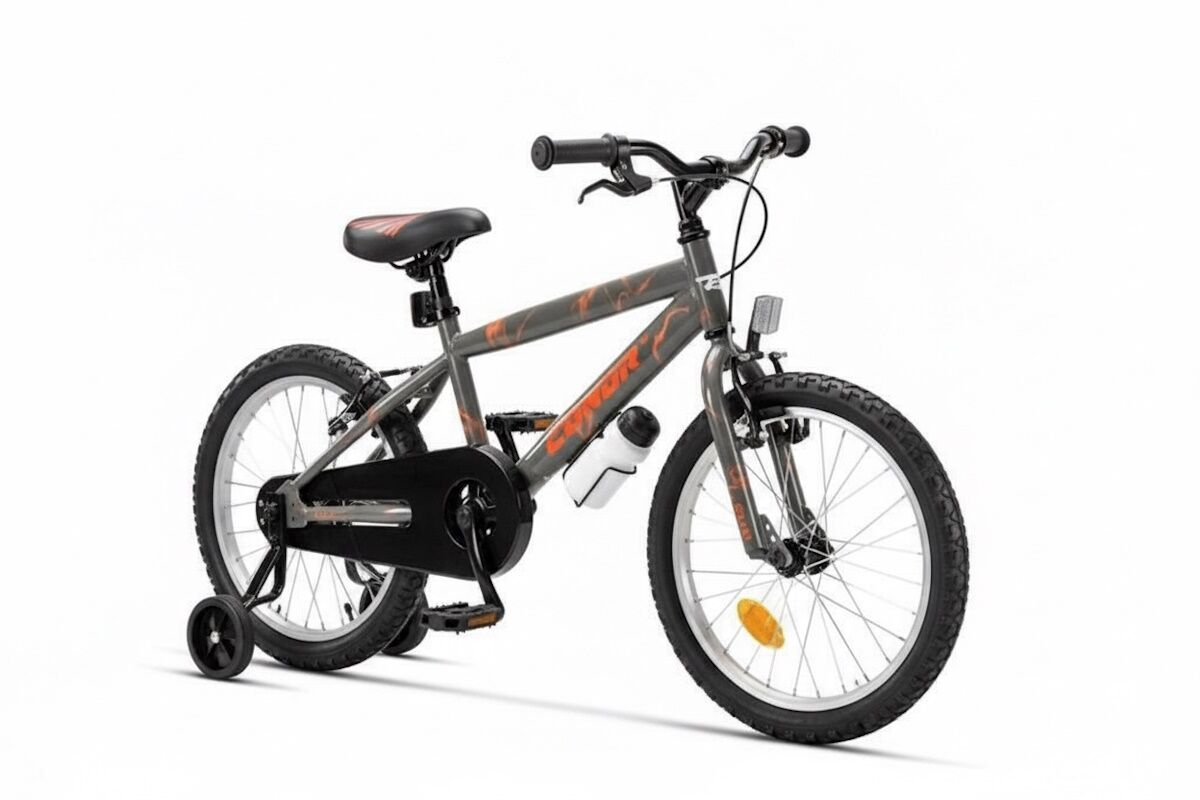 Los diferentes colores (gris/naranja con gráficos, azul, gris/azul claro y rojo) le dan un aspecto de bici “de mayor” que encanta a los niños y niñas que quieren parecerse a los mayores.