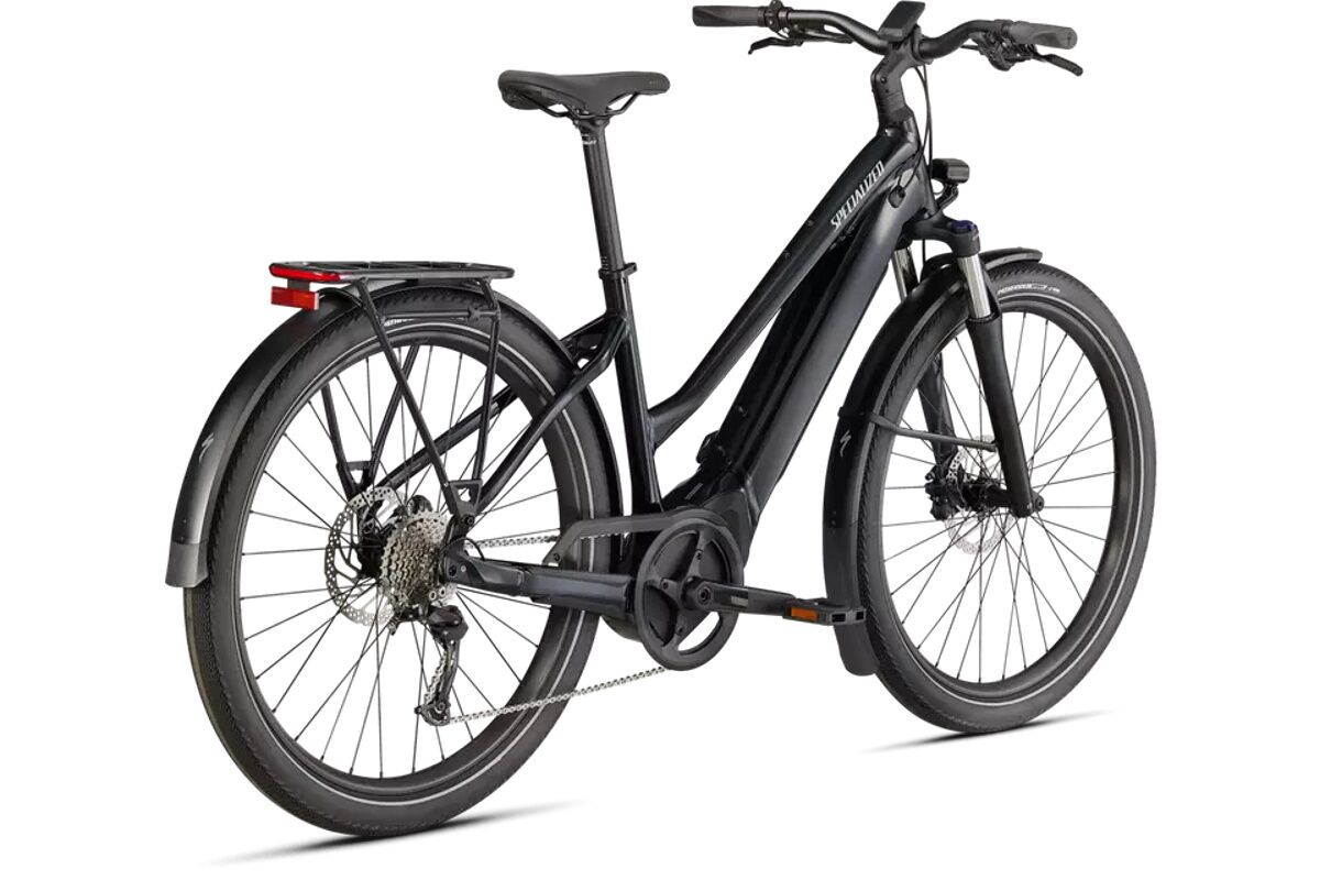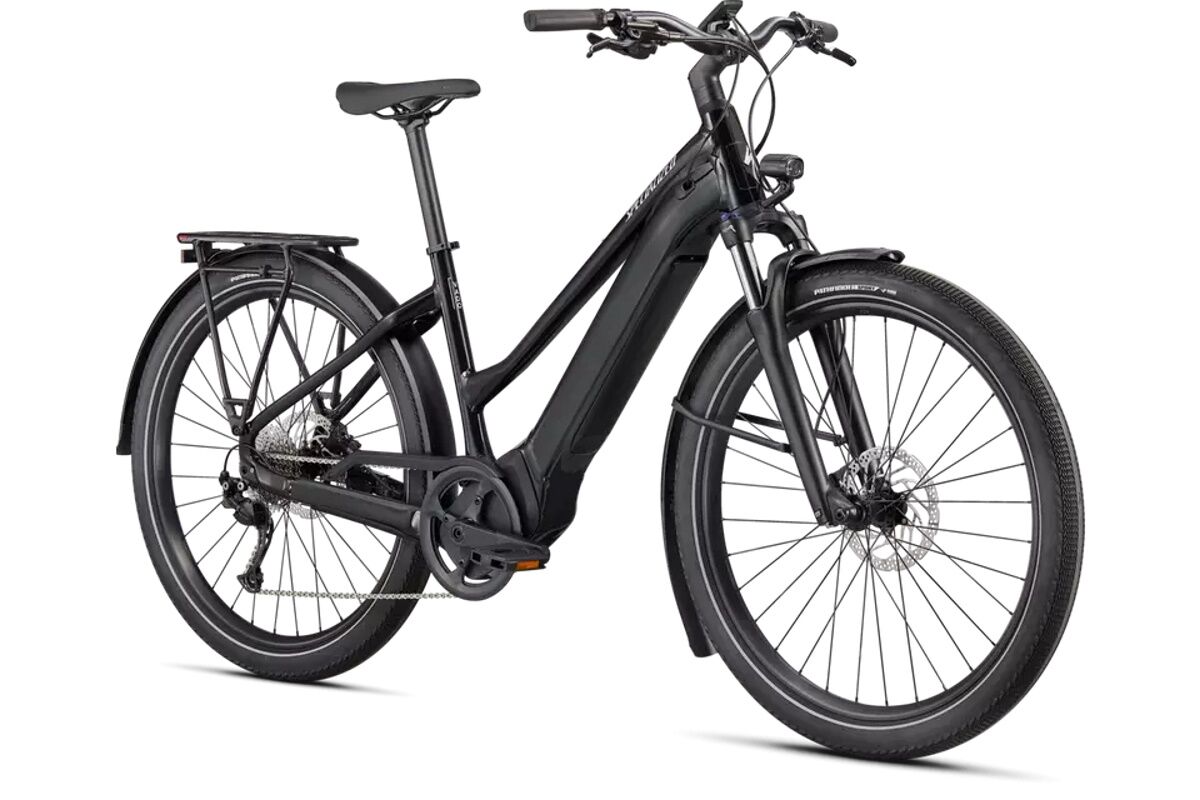 Especificaciones Tenedor SR Suntour MobieA32, 80 mm de recorrido, bloqueo, soportes para guardabarros, soporte de luz integrado Cuadro Aluminio E5, montaje de motor con soporte inferior, batería de tubo inferior bloqueable y completamente integrada, enrutamiento interno de cables, bloqueo y montaje de bastidor delantero Cabina Puños Contorno de mujer Body Geometry Sillín Bridge Sport, Rieles de acero, 155mm Provenir Flowset Specialized, aleación forjada en 3D, elevación de 20 grados, abrazadera de 31,8 mm Tija de sillín Specialized, aleación 6061, abrazadera de 2 pernos, retroceso de 0 mm, 30,9 mm Bigote daliniano Specialized, aleación, retroceso de 15 grados, elevación de 46 mm, 31,8 mm Frenos Frenos frontal Shimano BR-MT200, disco hidráulico, 180 mm Frenos trasero Shimano BR-MT200, disco hidráulico, 160 mm transmisión Platos 40T platos y bielas Bielas forjadas de aleación personalizadas Cadena KMC e9T, 9 velocidades con Missing Link™ Caja de cadena Cubrecadena personalizado Palancas de cambio Shimano Alivio, 9 velocidades con indicador óptico de marchas Casete Shimano CS-HG400, 9 velocidades, 11-36t Cambio trasero Shimano Alivio, SGS, 9-speed Ruedas Llantas Disco 650b, aleación de doble pared, con pasadores, 32h radios Industria suiza DT Neumático delantero Reflector deportivo Pathfinder, 650Bx2.3 Llanta trasera Reflector deportivo Pathfinder, 650Bx2.3 Buje delantero Shimano MT400, Centerlock, 15x100mm, 32h Buje trasero Shimano MT400-B, Centerlock, 12×148 Impulso, 32h Tubos internos Estándar 40 mm SV 650Bx1.75-2.4 bicicleta eléctrica Cargador Cargador personalizado, 42V4A con enchufe Rosenberger, 100-240V Arnés de cableado Mazo de cables personalizado Interfaz de usuario/remoto MasterMind TCD, con control remoto en el manillar, función antirrobo incorporada, conectividad Bluetooth®, páginas de visualización personalizables Motor Specialized 2.0E, par de 50 Nm, motor personalizado, 250 W nominales Batería Specialized U2-530, carcasa de aleación, indicador de estado de carga, 530 Wh Accesorios Guardabarros Guardabarros Specialized DRYTECH, 65 mm de ancho, soporte de aluminio Faro Lezyne EBIKE MINI STVZO E65, 210 lúmenes, 12V Pedales Viajero especializado con cinta de agarre y reflectores Campana campana sencilla Luz de la cola Spanninga Commuter Glow XE, 12V pata de cabra Pie de apoyo especializado, montura de 40 mm Estante Portabultos especializado, interfaz MIK HD, soportes para portaequipajes integrados, carga máxima de 27 kg Candado de bicicleta Bloqueo del sistema turbo
