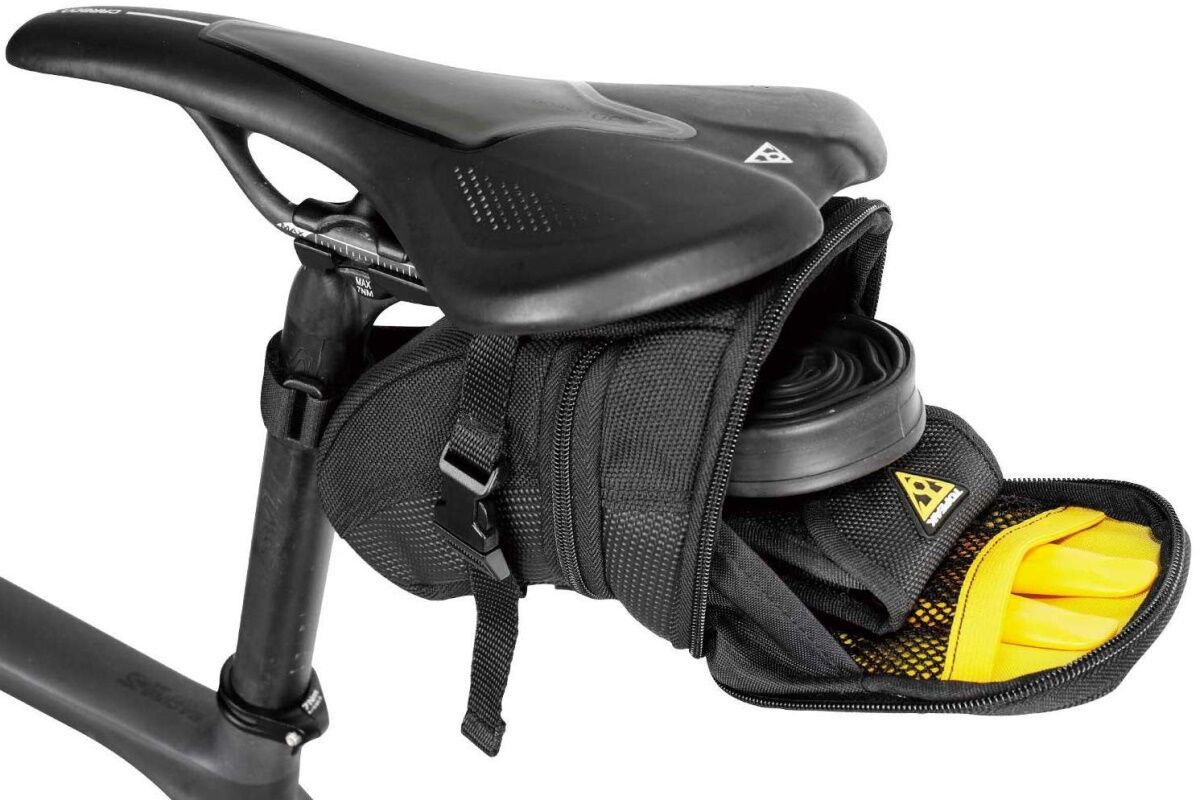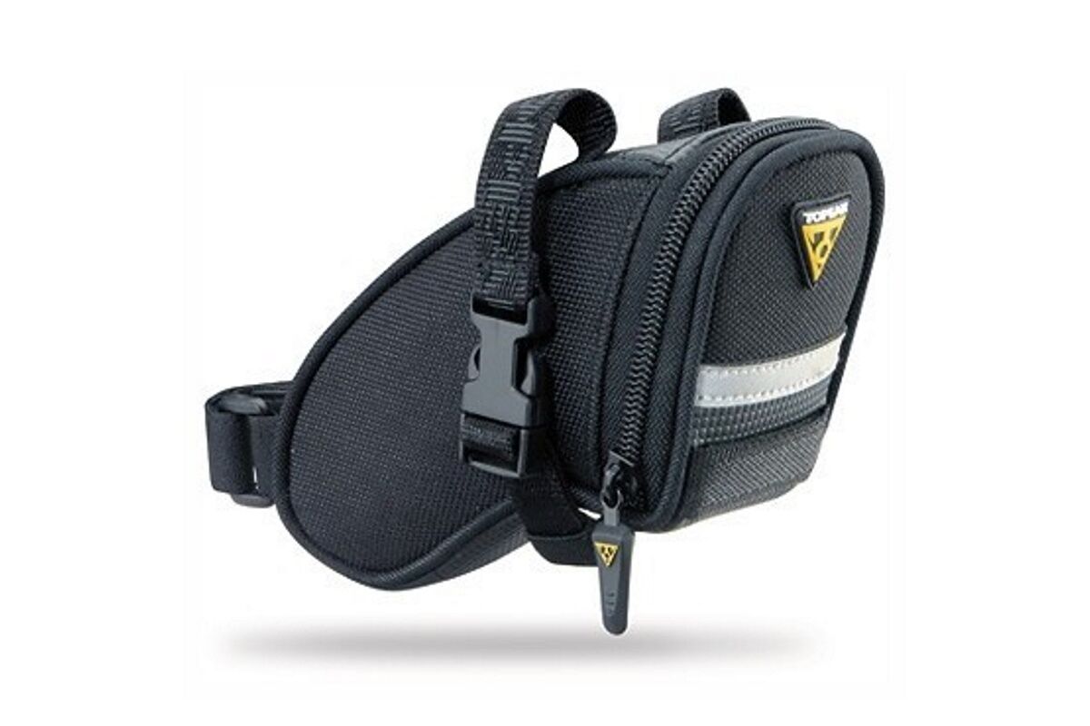 Bolsa de sillín Topeak Aero Wedge Pack, peso mínimo y diseño en forma de cuña para llevar las herramientas mínimas necesarias para pequeñas reparaciones y no generar turbulencias por el impacto del viento.