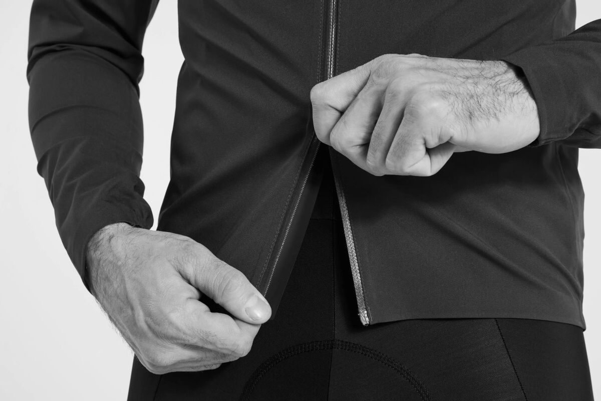 - La carcasa impermeable tiene un estiramiento mecánico de 4 vías integrado en el tejido, lo que permite que la chaqueta se ajuste y se sienta cómoda en su cuerpo, dentro y fuera de la bicicleta.