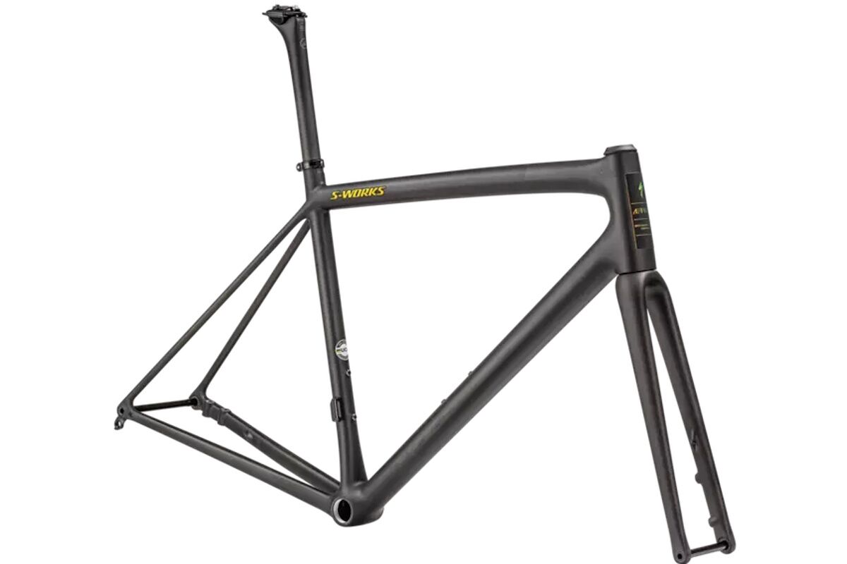 Cuadro: S-Works Aethos FACT 12r Carbon, Rider First Engineered™, eje de pedalier roscado, solo enrutamiento de cables electrónico, eje pasante de 12 x 142 mm, disco de montaje plano.