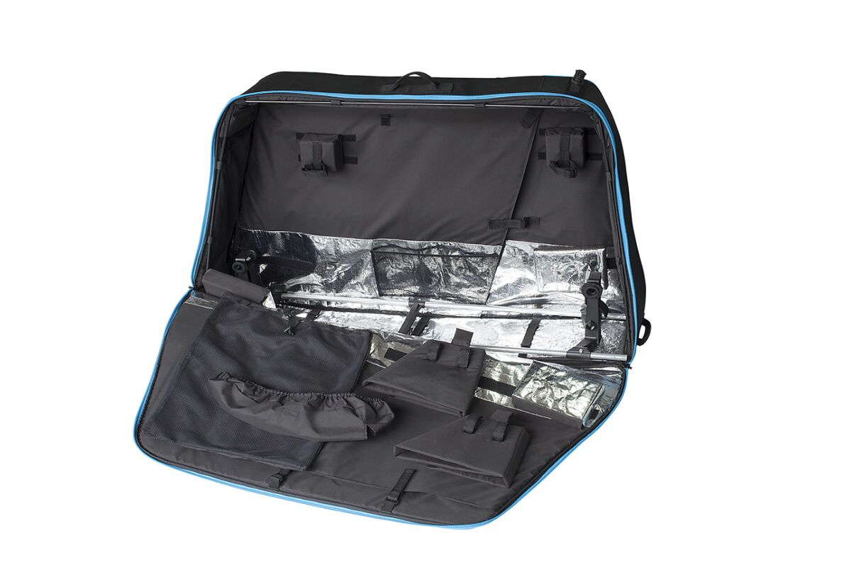 Funda con asas con soporte interno rigido y ruedas para transportar bicicleta color negro