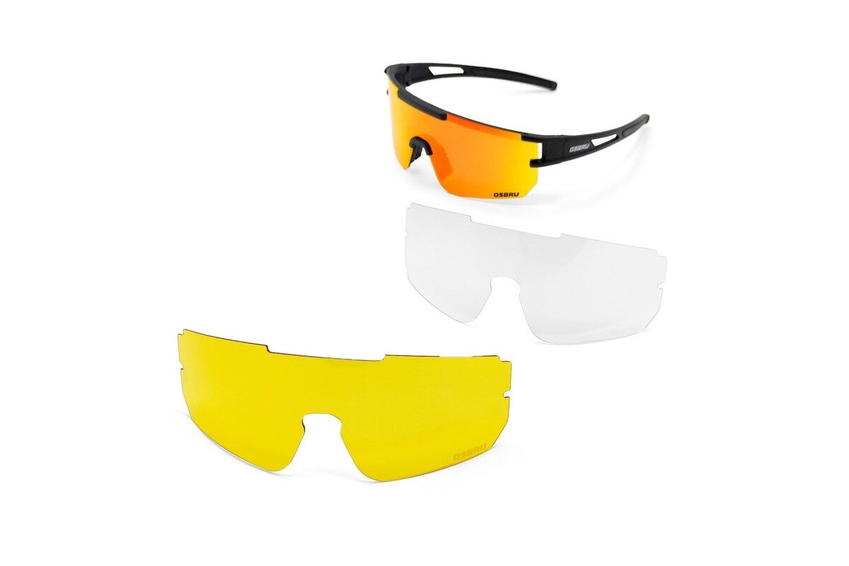 Gafas ciclismo OSBRU RACE BRUN – BLACK/GOLD + Yellow + Transparente