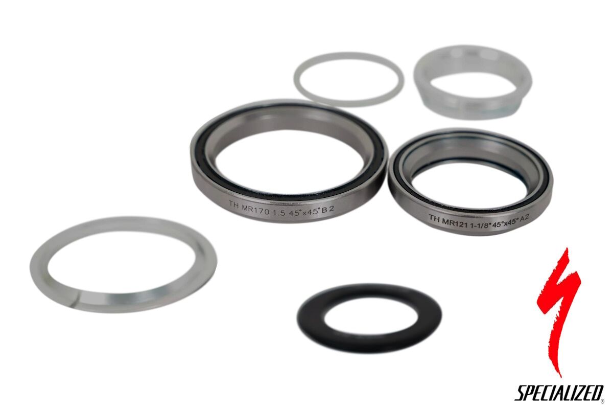 - Rodamiento Superior: 1-1/8″ (41,8 mm de diámetro exterior x 30,50 mm de diámetro interior x 8 mm de espesor, 45 x 45 grados).