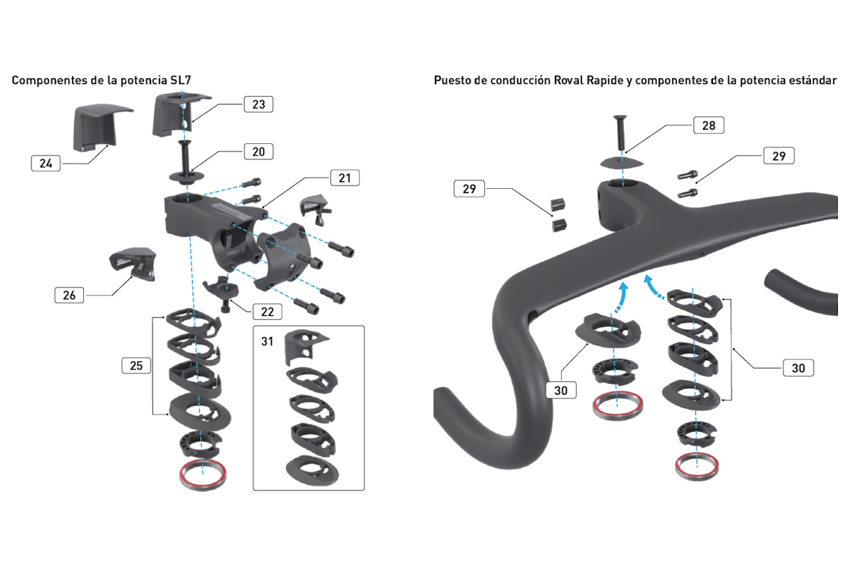 - Tapa de plástico abierta para potencia Tarmac SL7: Se utiliza cuando el tubo de dirección sobresale de la parte superior de la potencia (máximo 5 mm) (1 unidad)