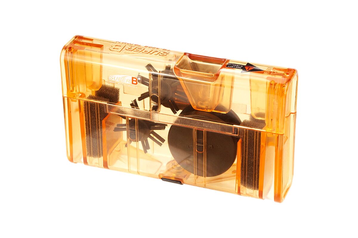 Para obtener el mejor rendimiento, se recomienda utilizar junto a un cepillo para cassette y desengrasante de cadenas durante el proceso de limpieza de la cadena. Instrucciones: 1. Cubra el área de trabajo con periódicos o trapos para absorber el exceso de líquido de limpieza y la suciedad que pueda gotear de la cadena durante la limpieza. 2. Monte la bicicleta en un caballete de trabajo para asegurarse de que el sistema de transmisión pueda girar libremente. Coloca la cadena en el piñón pequeño y ajusta la bicicleta de modo que la parte inferior de la cadena quede paralela al suelo. 3. Quita el exceso de barro, suciedad y mugre de la cadena y las poleas con un cepillo de dientes duro y un cepillo de limpieza. 4. Monta el mango en el cuerpo del limpiador de cadenas. 5. Gira el clip de bloqueo para quitar la tapa hacia arriba, coloca el limpiador de cadena en la parte inferior de la cadena, a medio camino entre el cassette y los platos. 6. Vuelva a colocar la tapa y pon el bloqueo. Se debe escuchar un "CLIC" para indicar que el bloqueo está asegurado. 7. Vierte desengrasante hasta la línea “FILL” situada en el lateral de la carcasa inferior. No sobrepases esta linea para evitar derrames. 8. Sostén firmemente el mango del limpiador con una mano, gira la biela lentamente en sentido antihorario varias vueltas completas hasta que toda la cadena hayas completado 2 o 3 ciclos. Vuelve a llenar el depósito con limpiador nuevo y repite el proceso si es necesario. 9. Retira el limpiador de cadenas y seca bien la cadena con un trapo para eliminar todo el líquido de limpieza. Vuelve a lubricar la cadena. 10. Enjuaga el limpiador de cadenas con agua y sécalo a la sombra antes de guardarlo.