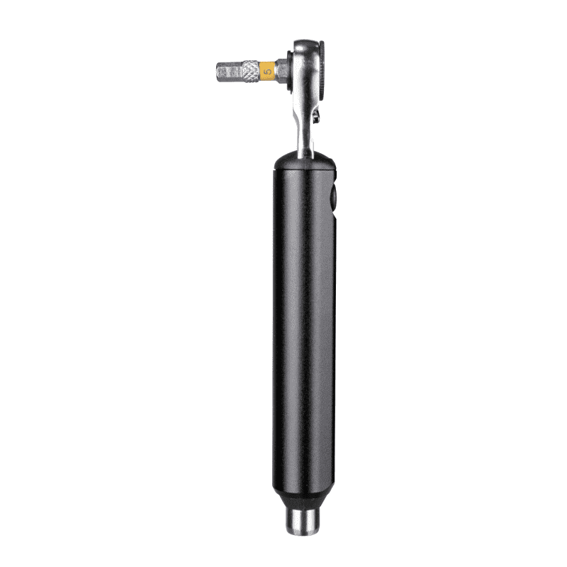 Llave de carraca muy compacta y fácil de usar con un compartimiento integrado para las 5 brocas más comunes. Las brocas Allen de 4/ 5 mm tienen una longitud de 30mm.
