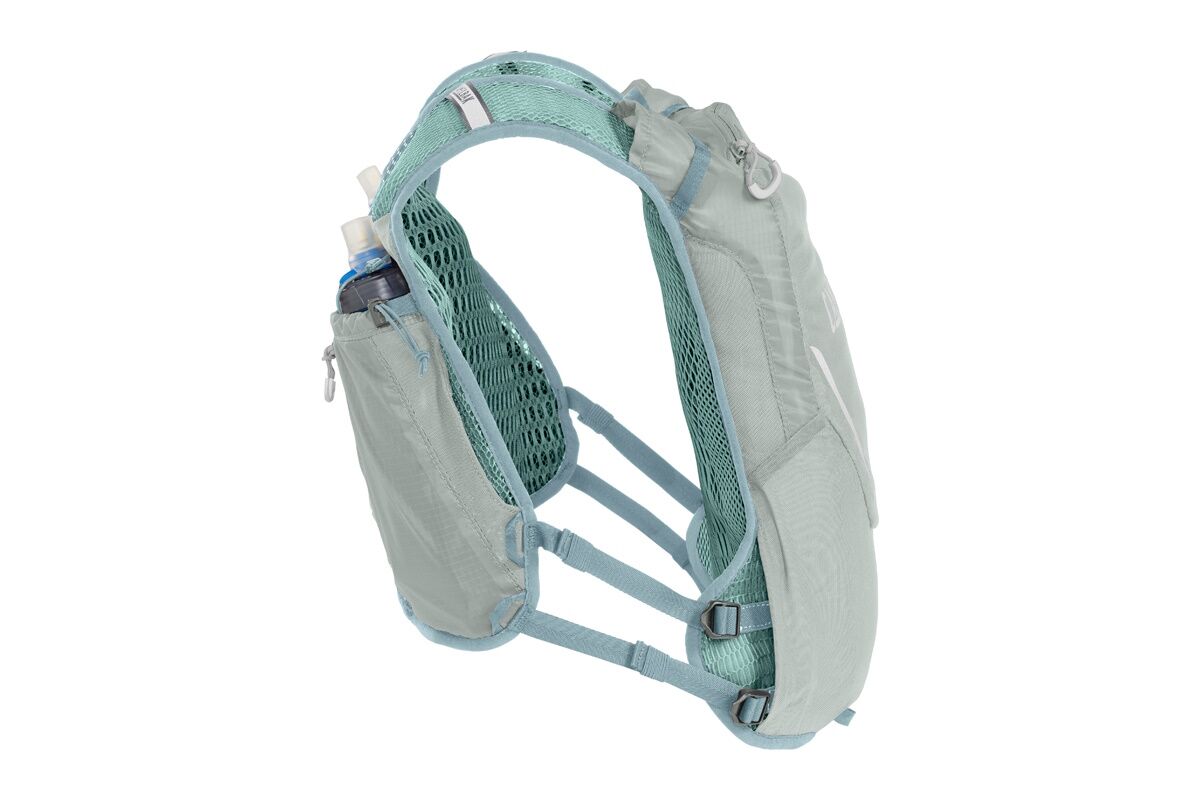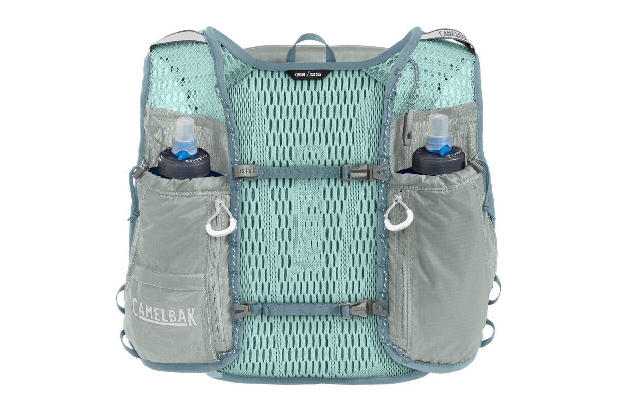 - Frascos Quick Stow™: Incluye dos bidones de 500 ml plegables y ligeros, equipados con válvulas de mordida de silicona para una hidratación rápida y sencilla.