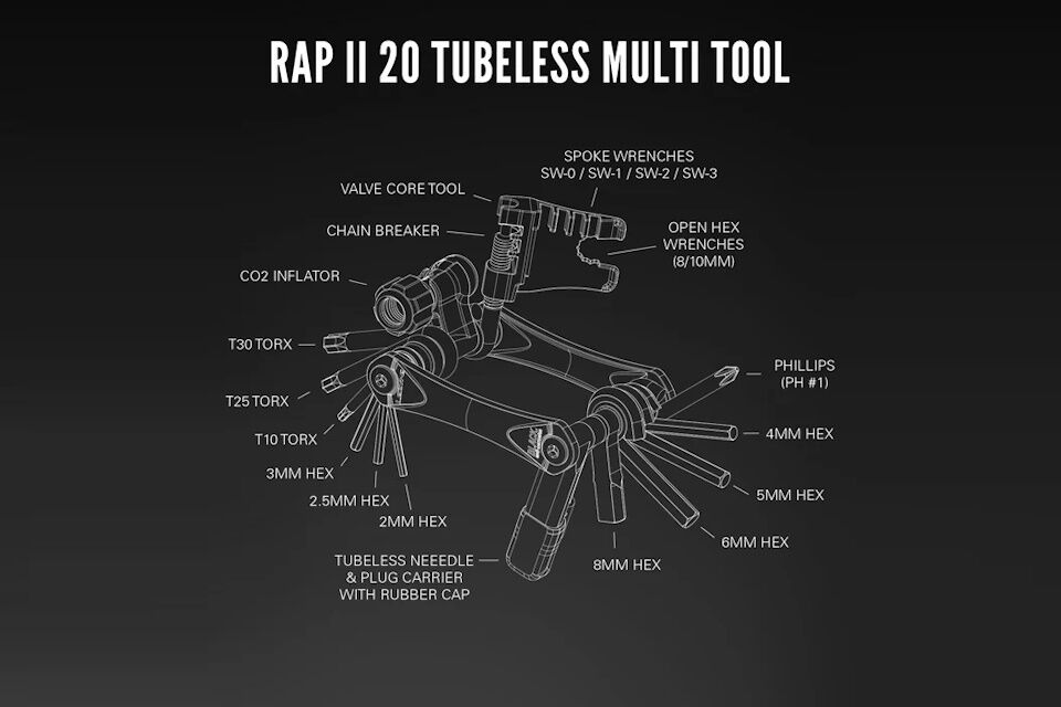 La serie RAP II de herramientas múltiples para ciclismo combina un estilo inconfundible con ingeniería de precisión, ofreciendo un rendimiento excepcional. Cada herramienta ha sido diseñada y fabricada internamente, garantizando la más alta calidad en cada componente.