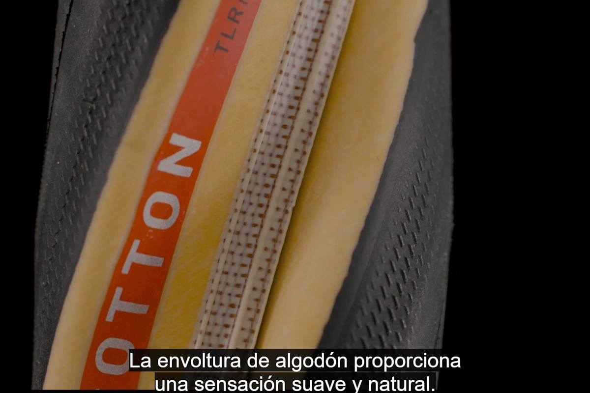 Combina un núcleo de poliéster (resistencia estructural) con fibras de algodón (tacto y flexibilidad) para un rodar más “vivo” y controlado, según el planteamiento del fabricante.
