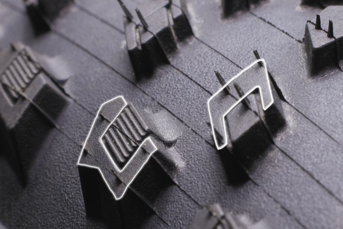 tacos exteriores Block-In-Block para un apoyo consistente cuando inclinas la bici. El doble compuesto