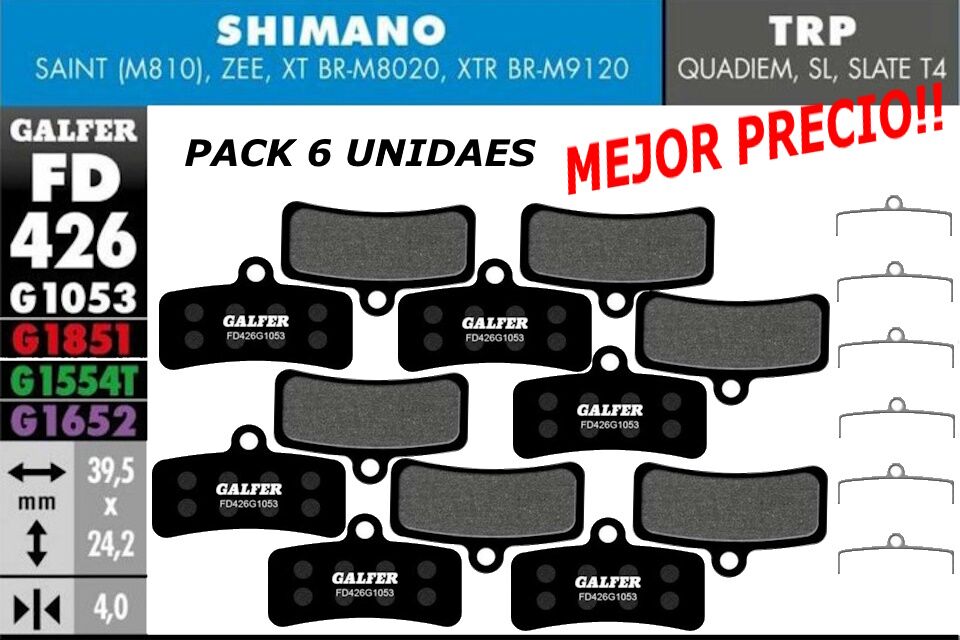 Pack Ahorro 6 Pares – Pastillas de freno Galfer FD426 – G1053 – Shimano – Tektro – TRP