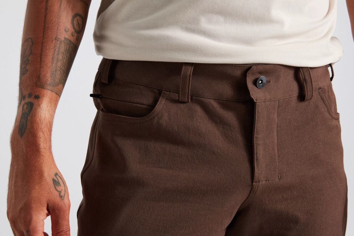 - La entrepierna de 11″ (talla 34 de cintura) cae por encima de la rodilla, lo que permite mucho espacio para las rodilleras.