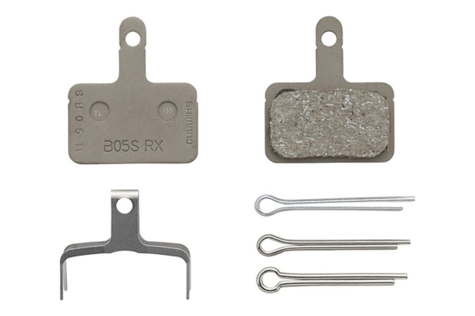Pastillas de freno de resina Shimano B05S-RX y muelle con pasador de aletas tipo 3