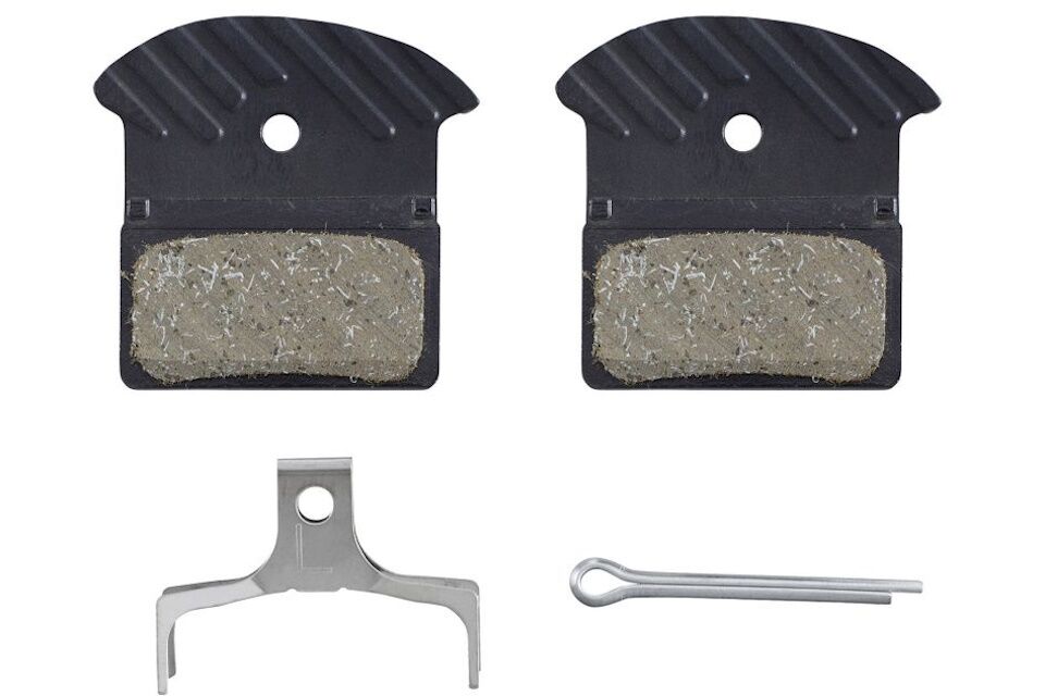Pastillas de freno de resina Shimano J05A-RF con aleta y muelle con pasador de aletas