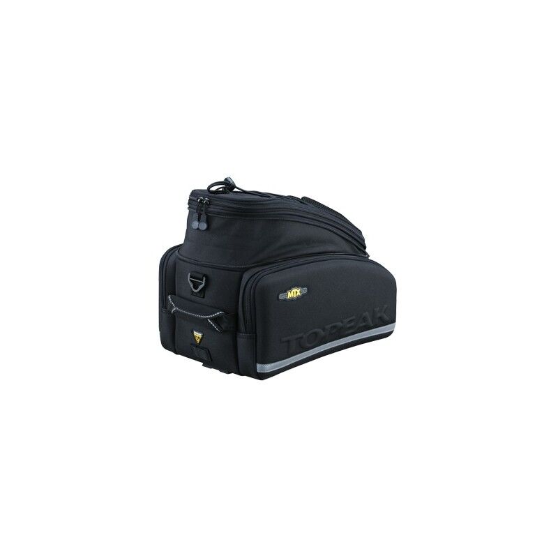 Esta bolsa combina la dureza y la resistencia con la flexibilidad. Es totalmente resistente al agua y compatible con todos los transportines MTX QuickTrack Topeak. Dispone de un compartimiento principal dividido, dos bolsillos laterales y un bolsillo treasero para colocar un bidón. Tiene bandas reflectantes para mejor visibilidad. Cuenta con una correa para llevarla colgada del hombro y una cubierta para la lluvia (opcional).
