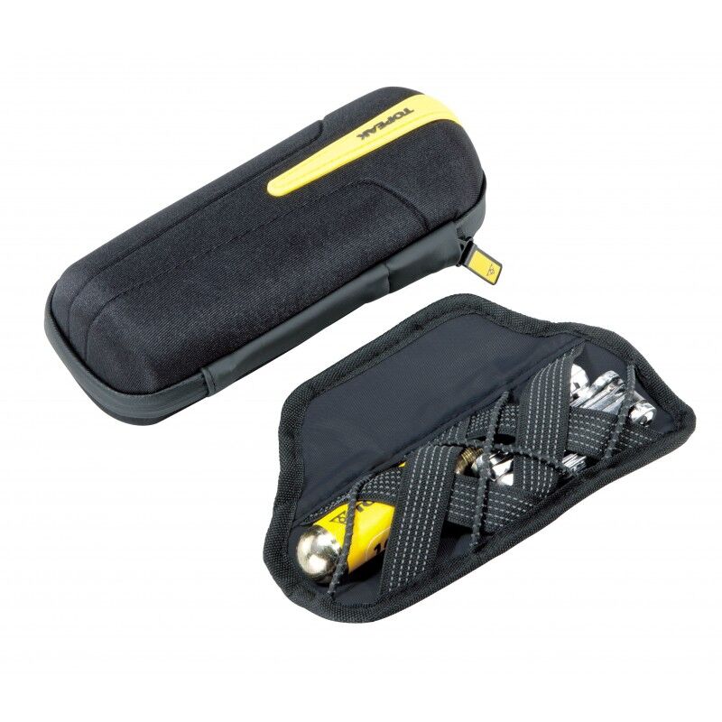 Bolsa que se coloca en el lugar del portabidones y permite llevar múltiples herramientas. El interior de la bolsa está dividido en varios compartimientos para mantener las herramientas bien organizadas.