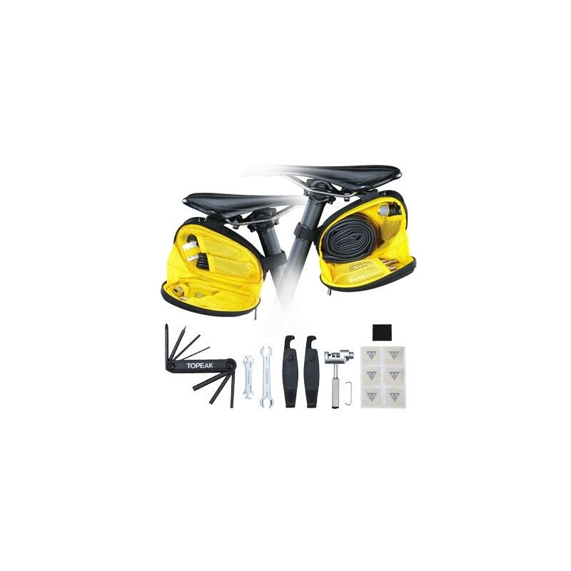 Dos bolsillos laterales para muy fácil acceso a Juego de herramientas de 17 piezas. Incluye llaves Allen de 2, 3, 4, 5 y 6 mm, destornilladores Phillips y planos, llaves abiertas de 8 y 10 mm, llaves de radios 14G, 15G, Mavic® M7 y Shimano®, herramienta universal para cadena con gancho de cadena, 2 desmontables para neumáticos y un kit de parche sin pegamento. El tronchacadenas es compatible para cualquier tipo de cadena ( hasta 12 velocidades) NO incluye cadenas de pasador hueco Campagnolo de 11 velocidades. Diseño semirígido para mayor resistencia y durabilidad.