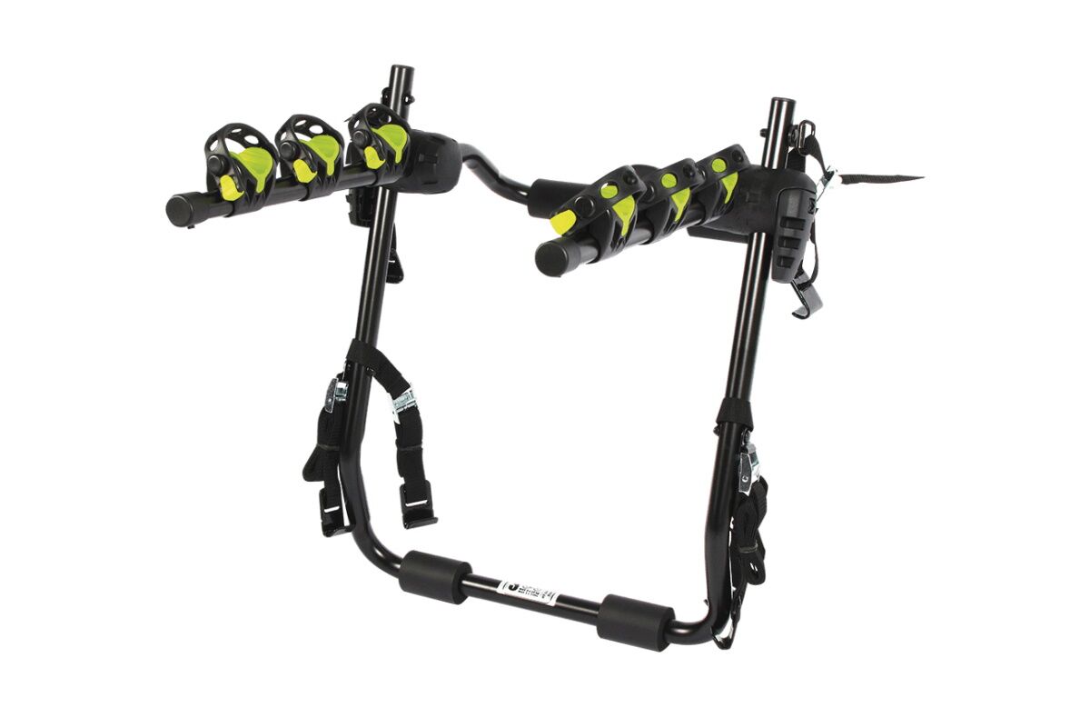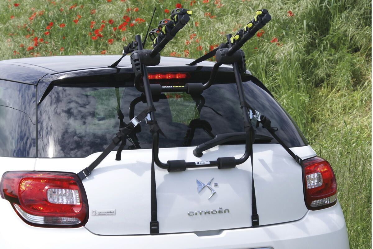 Montaje fácil con 6 correas. Brazo ajustable en diferentes ángulos, con un sistema de palanca de leva de operación rápida y fácil para adaptarse a la mayoría de los vehículos. Cunas acolchadas ajustadas y correas de goma para posicionar y minimizar el posible movimiento. Espuma de alta resistencia para colocar de forma estable la rejilla en la puerta trasera y evitar arañazos en la pintura del coche. El brazo se pliega para un espacio de almacenamiento compacto e incluso cabe en el maletero del automóvil. Correa de seguridad incluida para mayor seguridad. Recubrimiento de pintura en polvo para exteriores para una alta resistencia a la corrosión.