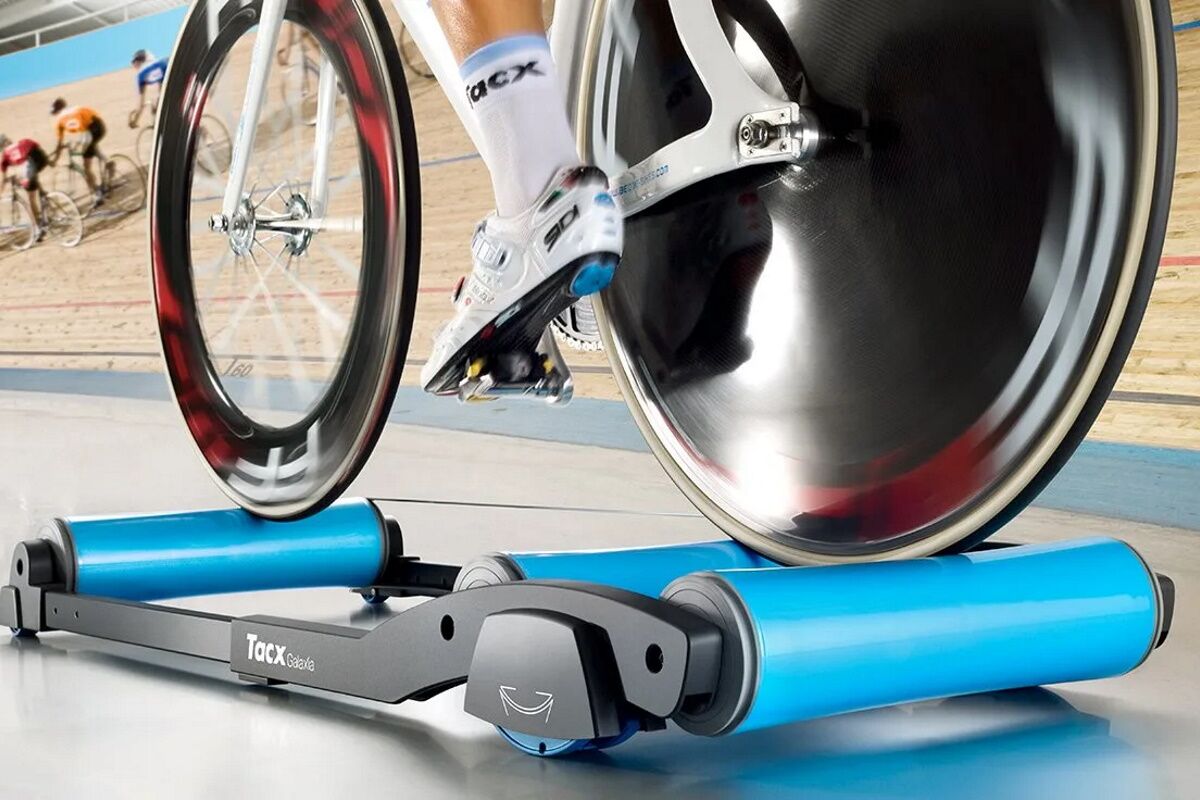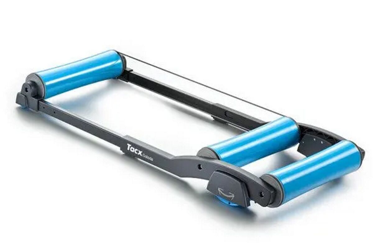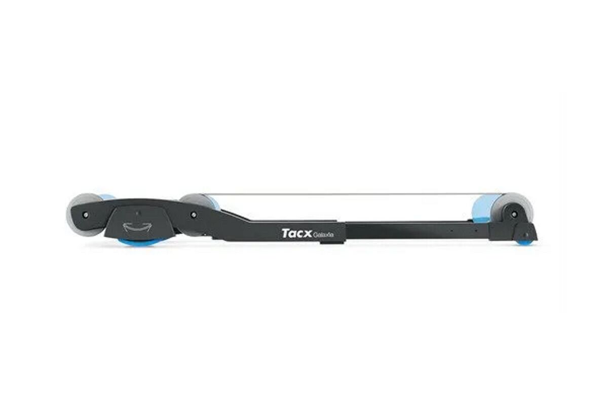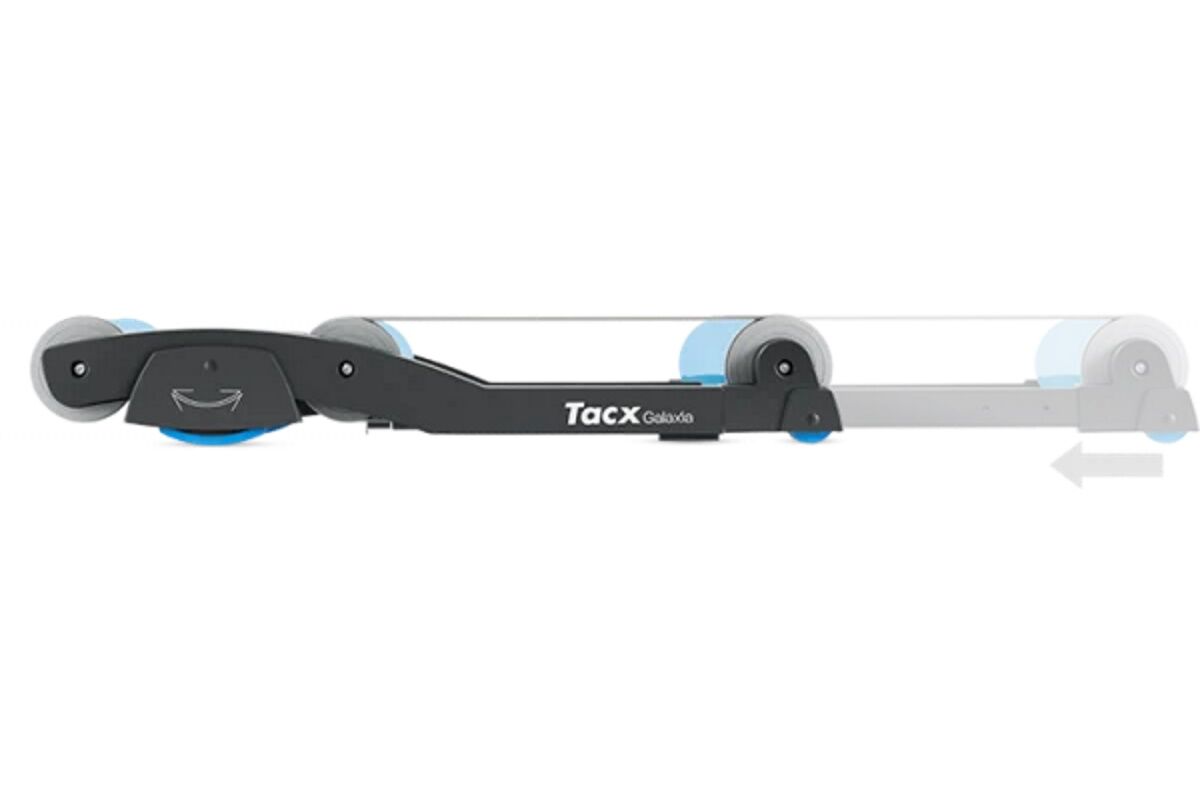 Entrena en interiores con el dispositivo de entrenamiento con rodillos Tacx® Galaxia. Con un sistema de giro patentado, estos avanzados rodillos son capaces de absorber las aceleraciones hacia delante y hacia atrás para que puedas pedalear con fuerza mientras permaneces en tu sitio.