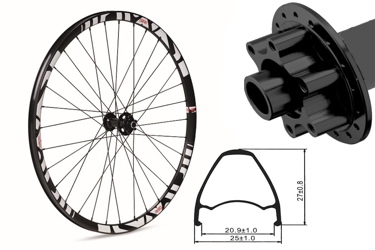 RUEDA DELANTERA PARA BTT DE 27'5": -LLANTA DE ALUMINIO TUBELESS READY, 21MM DE INTERIOR, 25MM DE EXTERIOR Y 27MM DE ALTURA -32 RADIOS NEGROS REDUCIDOS 2 X 1,8 X 2 Y CABECILLAS DE LATON NEGRAS -BUJE BOOST DE RODAMIENTOS PARA DISCO DE 6 TORNILLOS DE 15MM X 110MM -PESO 812gr. LA RUEDA SE SIRVE CON LA CINTA COLOCADA PARA CONVERTIRLA EN TUBELESS READY Y LA VALVULA TUBELESS.