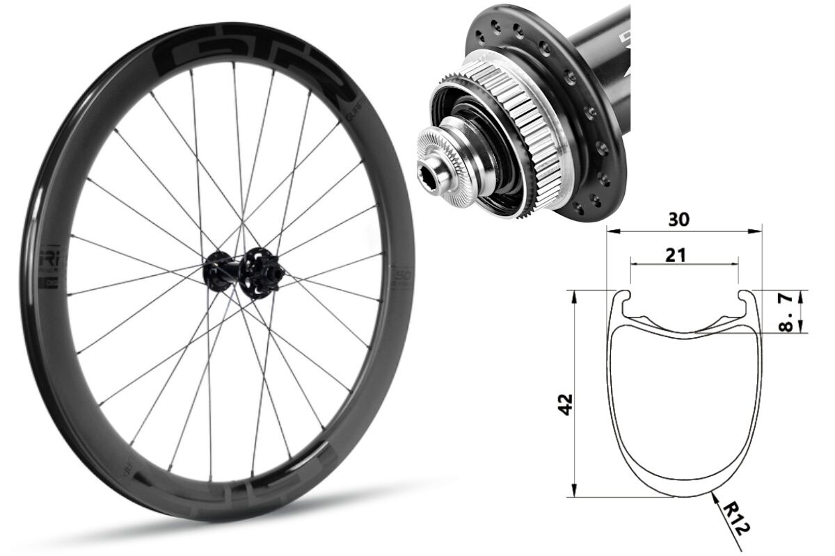 Rueda delantera carbono Carretera GTR RR42 Negro Center Lock