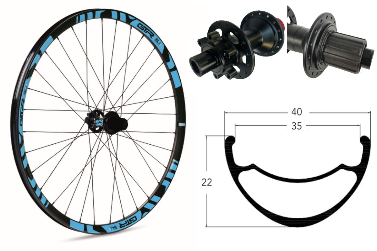 Rueda GTR SL35 especialmente diseñada para bici electrica. - Llanta 27,5" Tubeless Ready de aluminio con ojete reforzado de 35mm de interior , 40mm exterior y 22mm de altura - 32 radios negros y cabecillas de latón - Buje BOOST de rodamientos para disco de 6 tornillos eje 12 x 148mm Shimano 11v - Eje y nucleo de acero para un mayor reforzamiento. - Peso La rueda se sirve con la cinta colocada Tubeless Ready y se incluye la Valvula