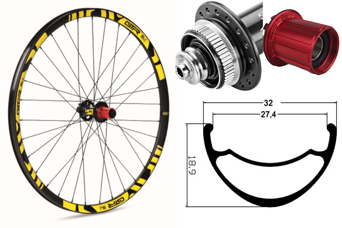 Rueda trasera aluminio MTB GTR SL27 27,5″ Amarillo Disc Center Lock Shimano