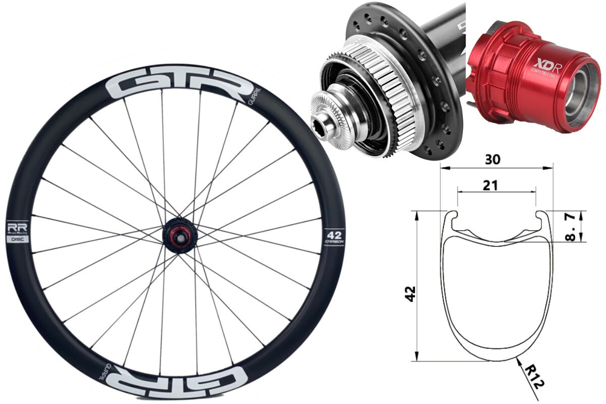 Rueda trasera carbono Carretera GTR RR42 Blanco Center Lock Sram XDR