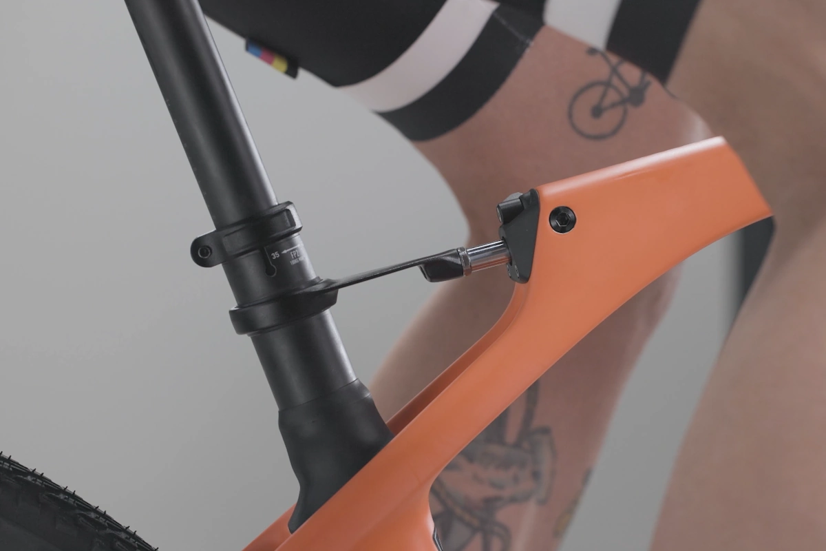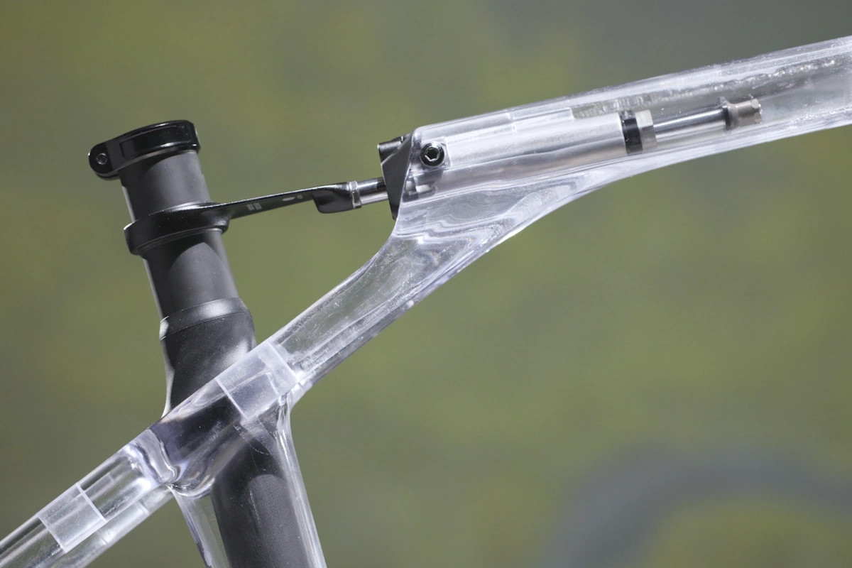 - Sistema: Amortiguación hidráulica de diseño “pasante” para controlar el movimiento de la tija del cuadro (adelante/atrás) durante la conducción