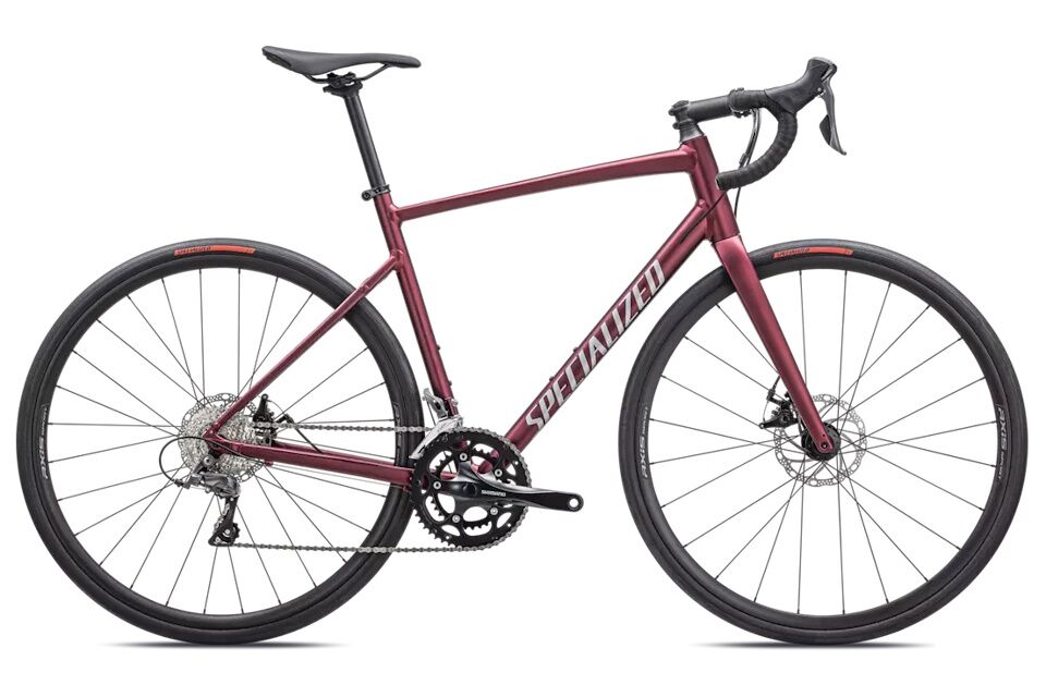 Specialized Allez 2025 – Satin Maroon / Silver Dust / Flo Red