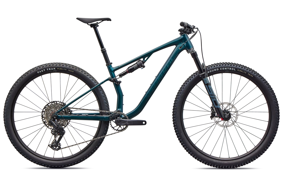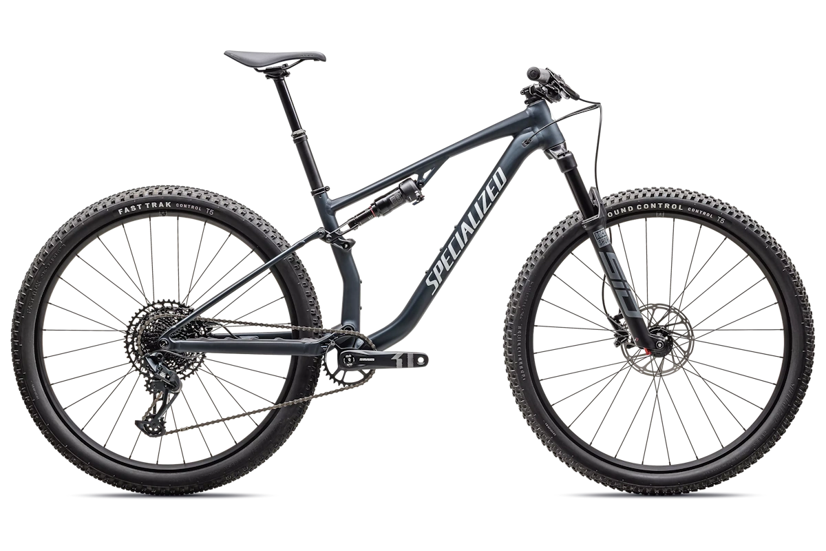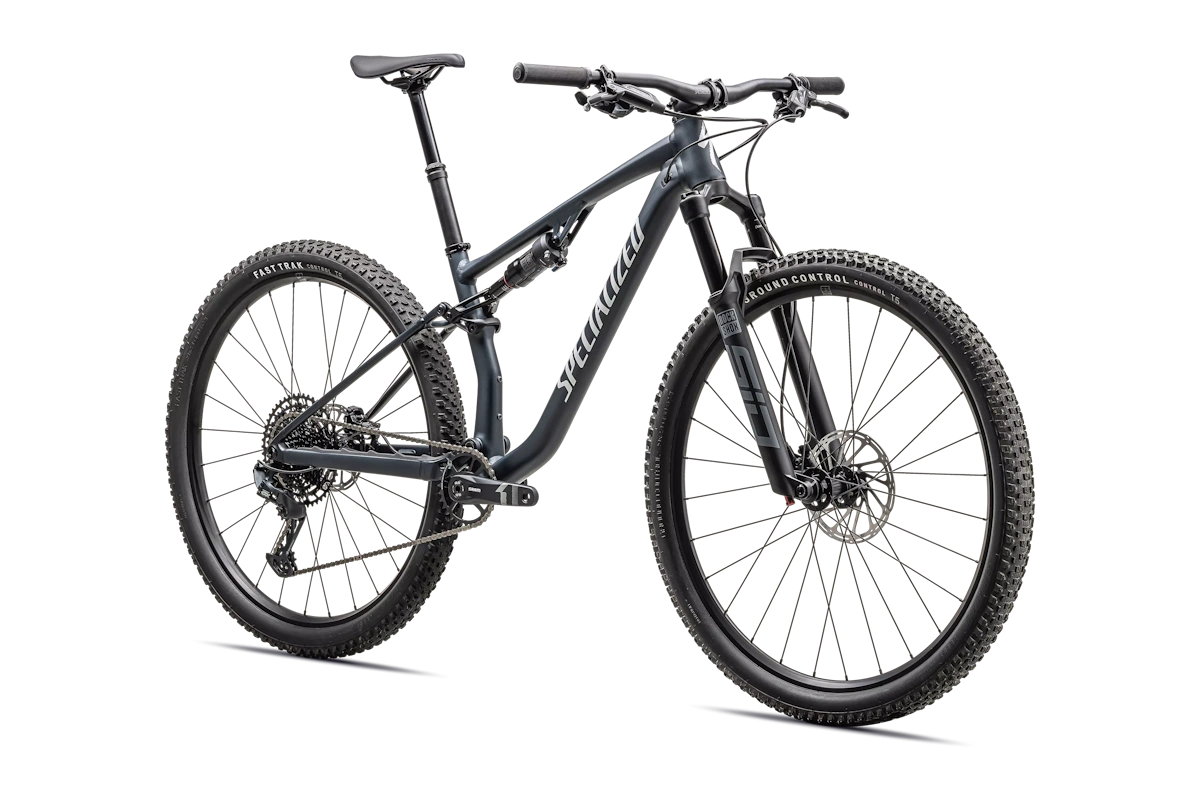 Las llantas Specialized Alloy son tubeless ready y ofrecen 27 mm de ancho interno. La combinación de neumáticos incluye Ground Control 29×2.35 delante y Fast Trak 29×2.35 detrás, ambos con carcasa Flex Lite y compuestos T5/T7, una selección pensada para equilibrar agarre delantero, velocidad de rodadura y control.