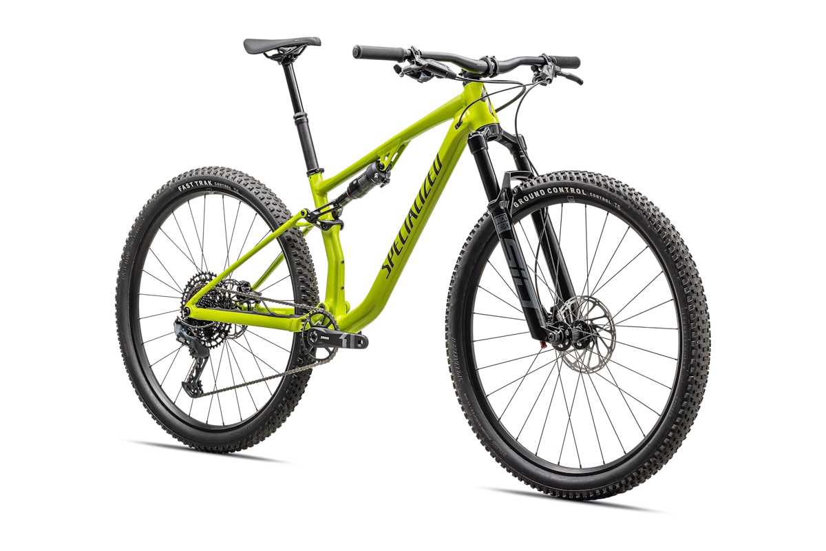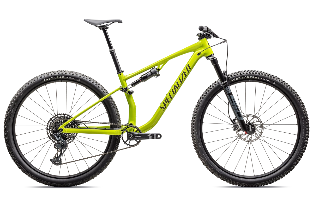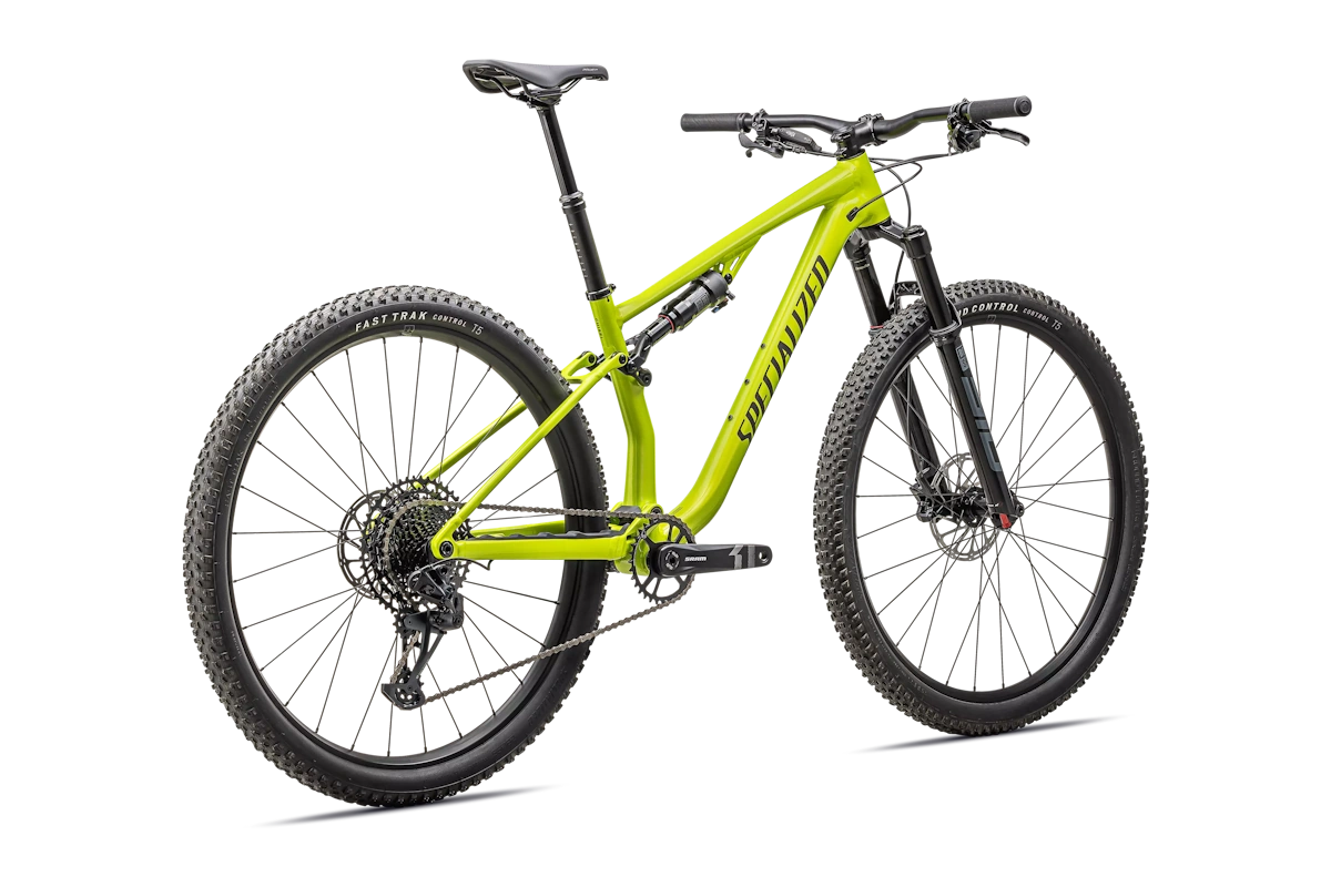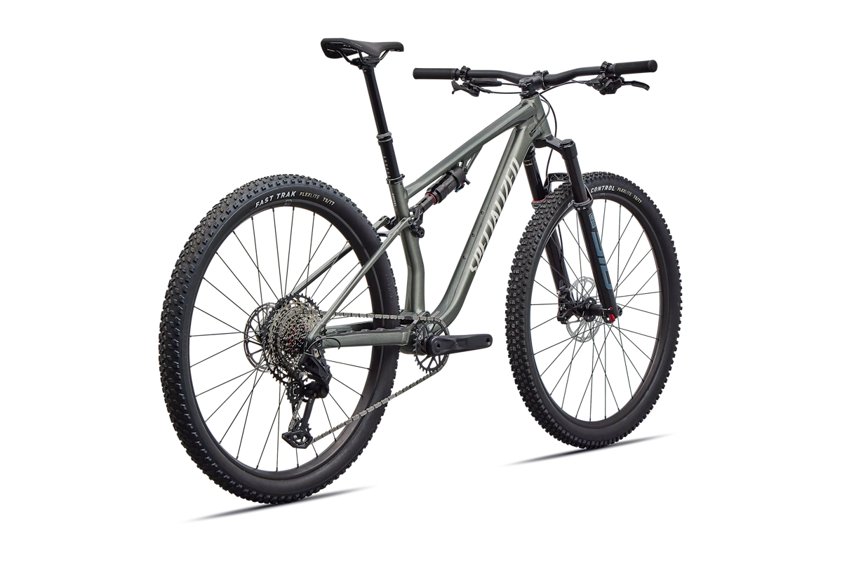 Las llantas Specialized Alloy son tubeless ready y ofrecen 27 mm de ancho interno. La combinación de neumáticos incluye Ground Control 29×2.35 delante y Fast Trak 29×2.35 detrás, ambos con carcasa Flex Lite y compuestos T5/T7, una selección pensada para equilibrar agarre delantero, velocidad de rodadura y control.