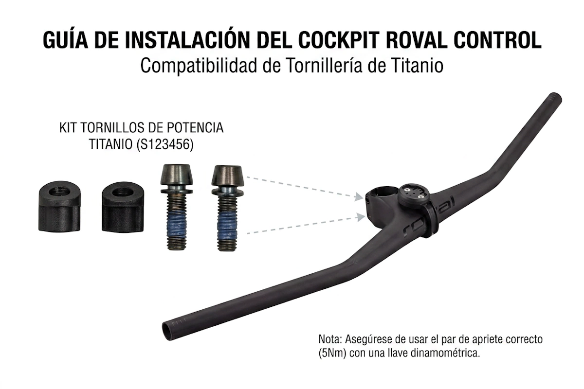Importante: respeta siempre el par máximo de 5,6 Nm indicado por el fabricante. Un apriete excesivo o una tornillería incorrecta puede afectar a la integridad del componente y al funcionamiento del cockpit.