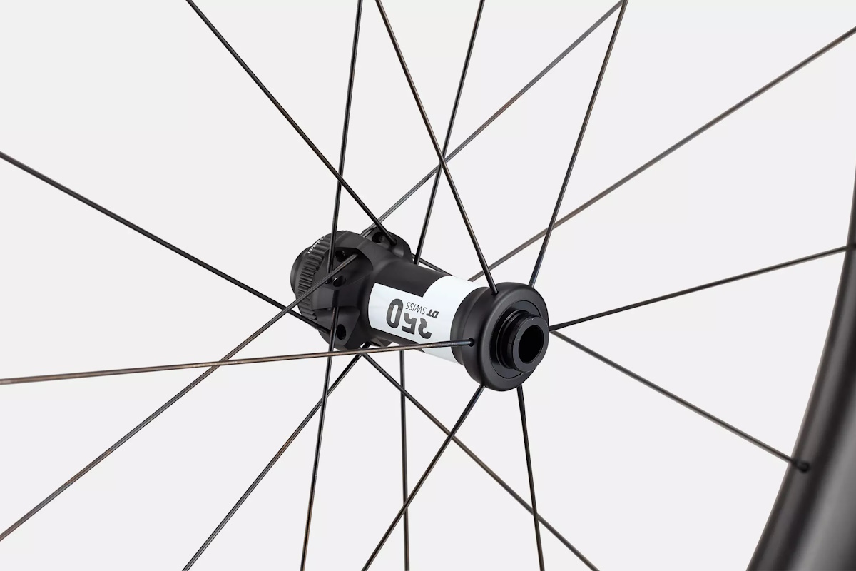 - Tecnología: Llantas de carbono clincher con gancho, compatibles tubeless y mousse, bujes DT Swiss 350 EXP con sistema de trinquete de 36 dientes.
