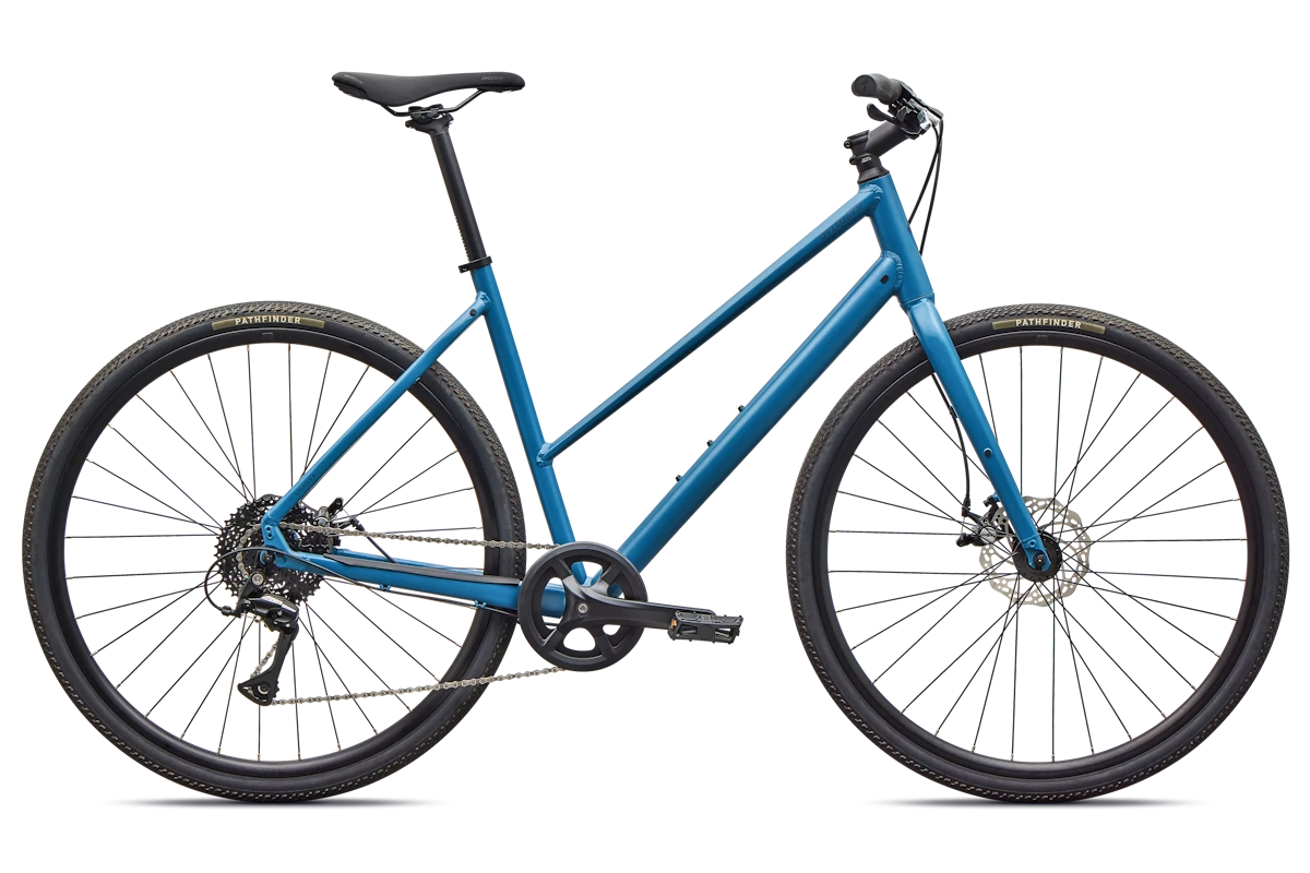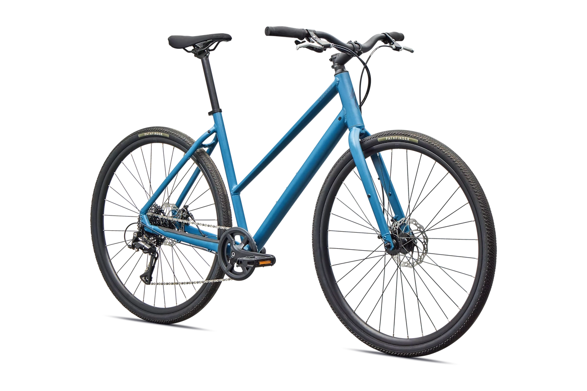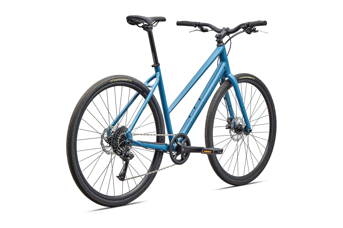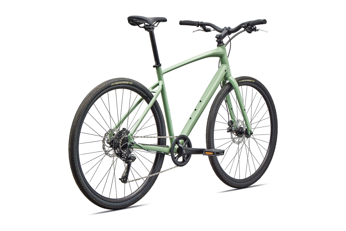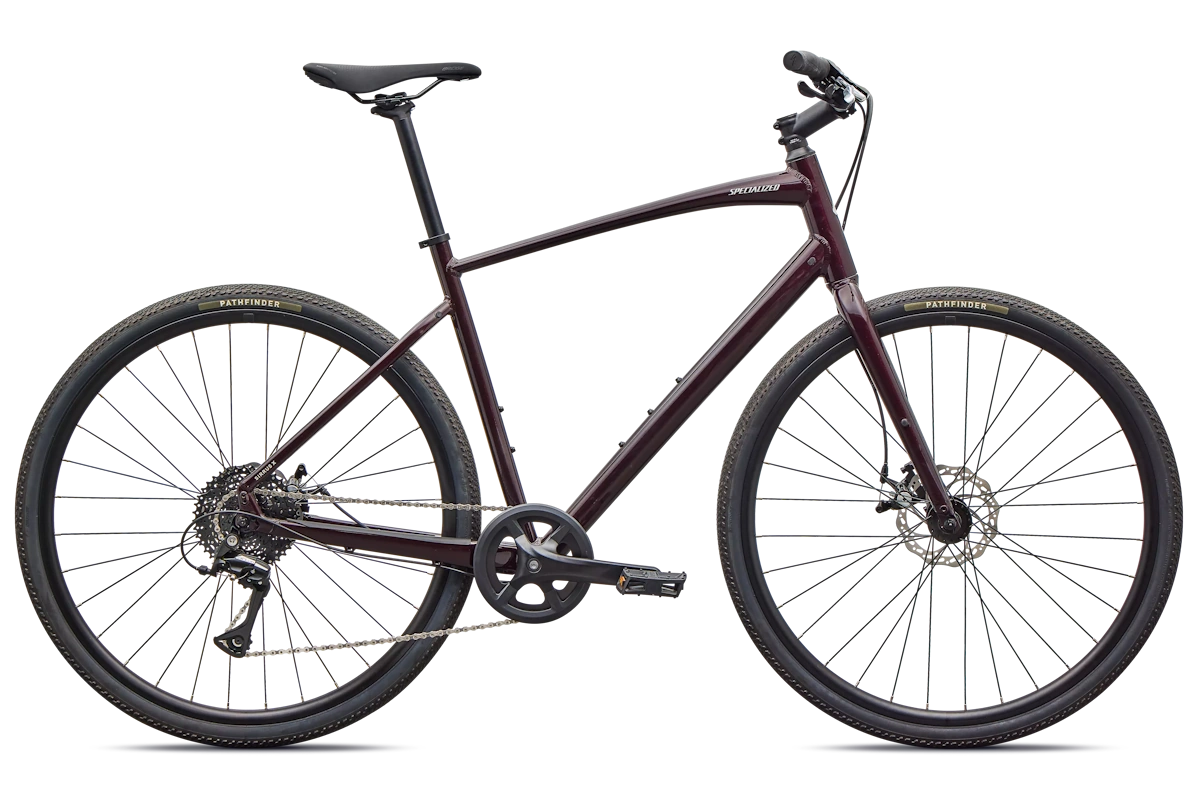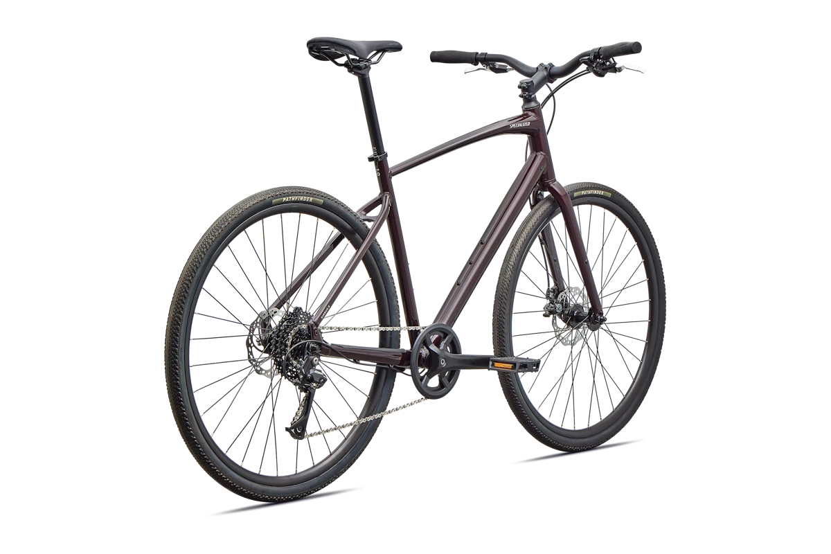- Cuadro: Specialized A1 Premium Aluminum, Fitness Geometry, tubería butted, cableado interno, flat-mount disc, quick-release, anclajes Plug + Play para portabultos/guardabarros