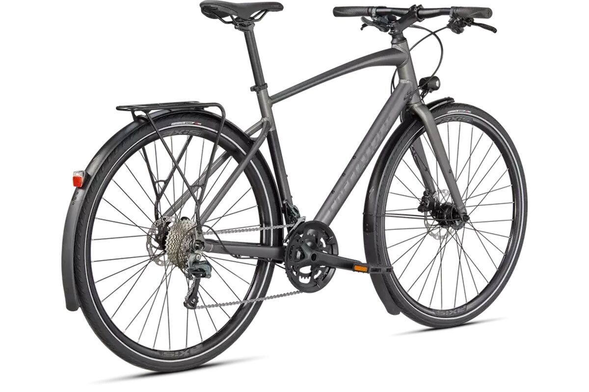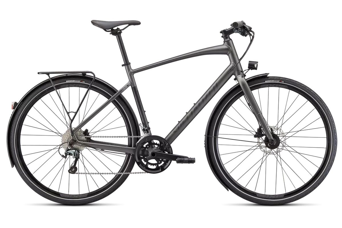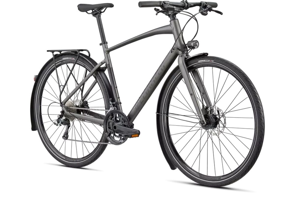 - Aluminio Specialized A1 Premium, geometría Fitness, tubos conificados, enrutamiento interno de cables, disco de montaje plano, liberación rápida, soportes para portabultos/guardabarros Plug + Play