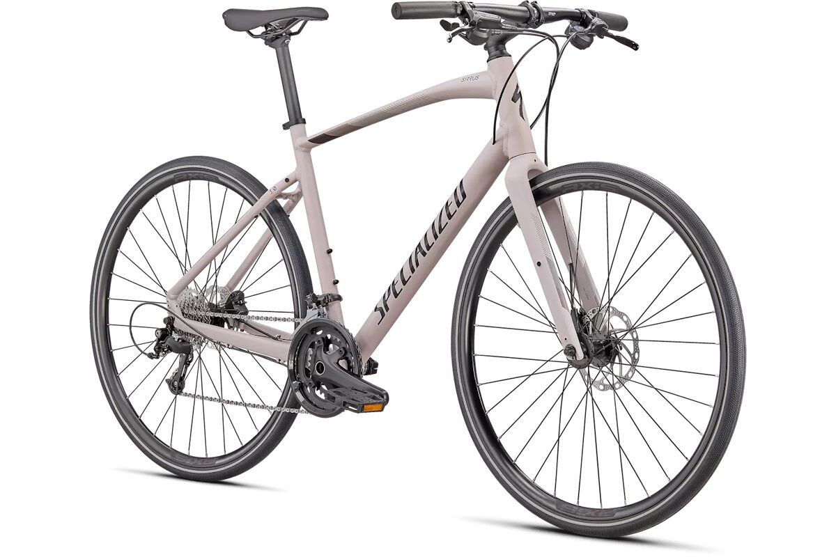 - Aluminio Specialized A1 Premium, geometría Fitness, tubos conificados, enrutamiento interno de cables, disco de montaje plano, liberación rápida, soportes para portabultos/guardabarros Plug + Play