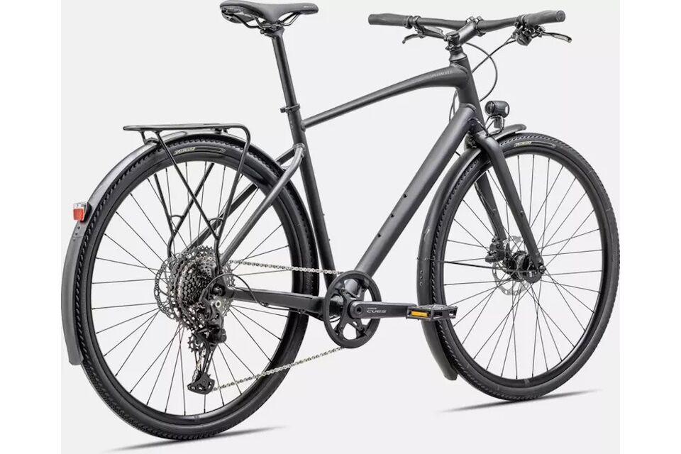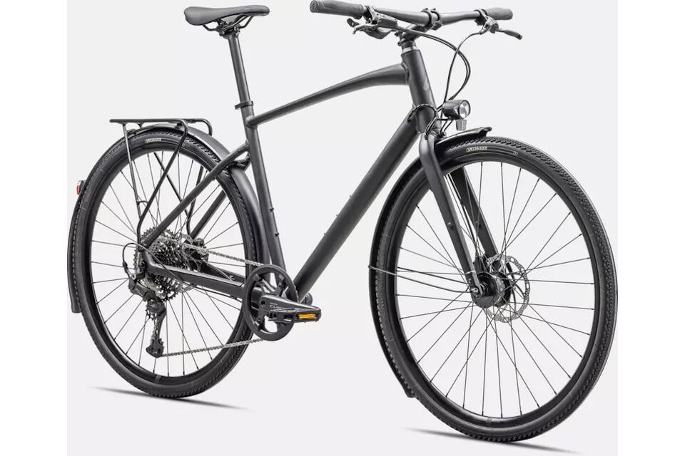 - Cuadro: Aluminio Specialized A1 Premium, geometría Fitness, tubos conificados, cableado interno, montaje plano para discos, liberación rápida, compatible con portaequipajes y guardabarros Plug + Play.