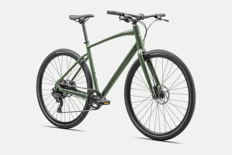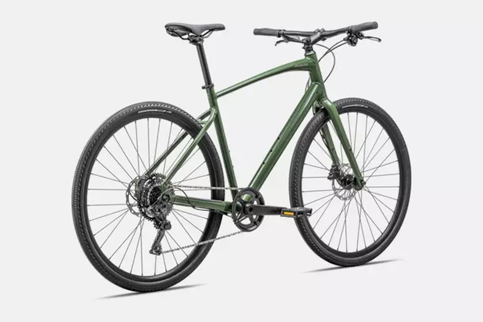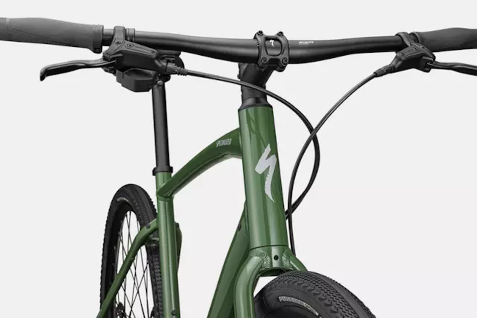 Cuadro: Aluminio Specialized A1 Premium, geometría Fitness, tubos conificados, cableado interno, disco montaje plano, liberación rápida, soportes Plug + Play para guardabarros y portabultos.