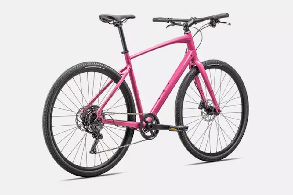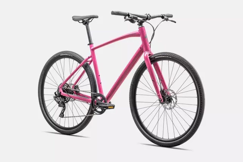 Cuadro: Aluminio Specialized A1 Premium, geometría Fitness, tubos conificados, cableado interno, disco montaje plano, liberación rápida, soportes Plug + Play para guardabarros y portabultos.