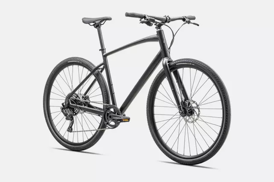 • Cuadro: Aluminio Specialized A1 Premium, geometría Fitness, tubos conificados, cableado interno, disco montaje plano, liberación rápida, soportes Plug + Play para guardabarros y portabultos.