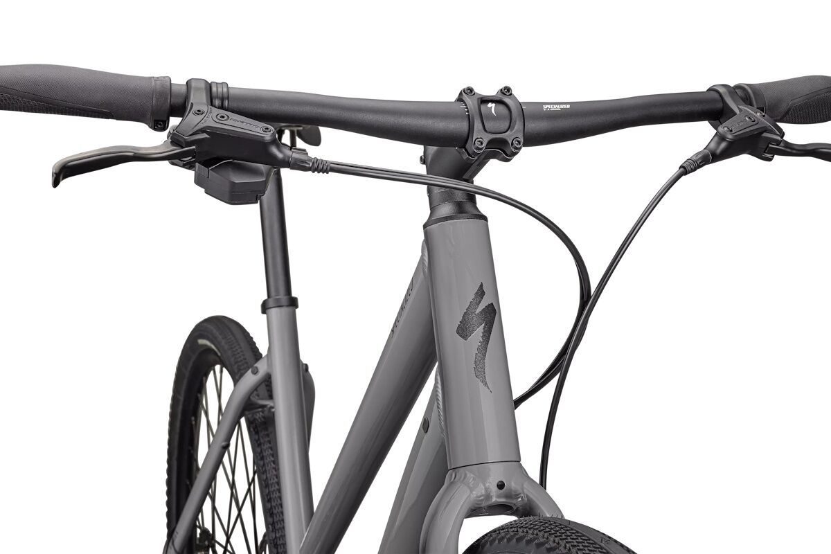 Cuadro: Aluminio premium Specialized A1, geometría Fitness, tubos conificados, cableado interno, acceso bajo (step through), soportes para portaequipaje y guardabarros Plug + Play