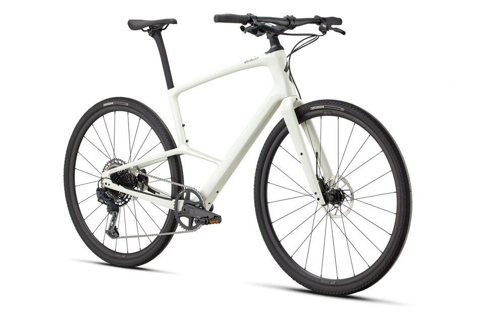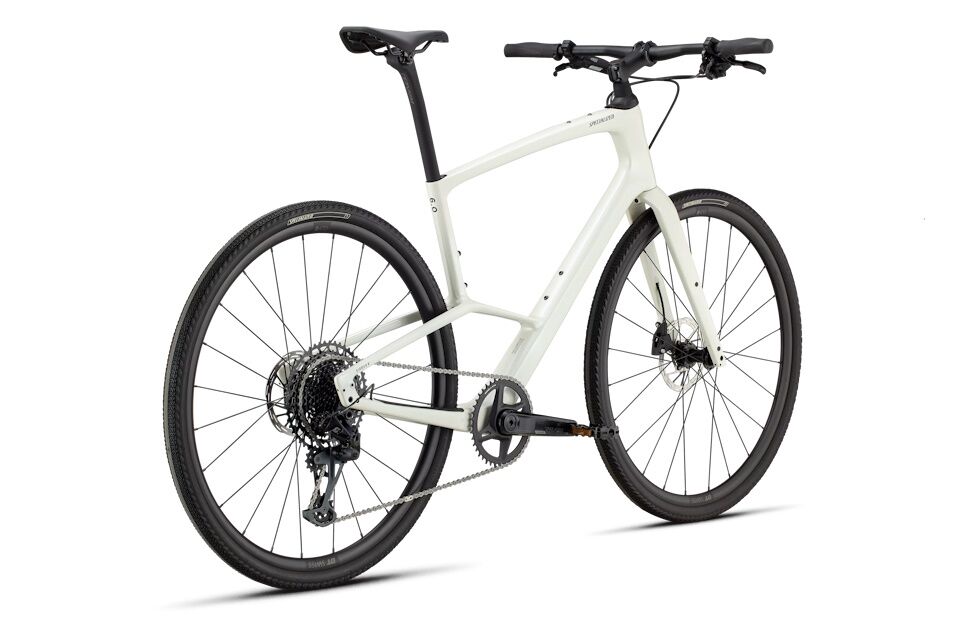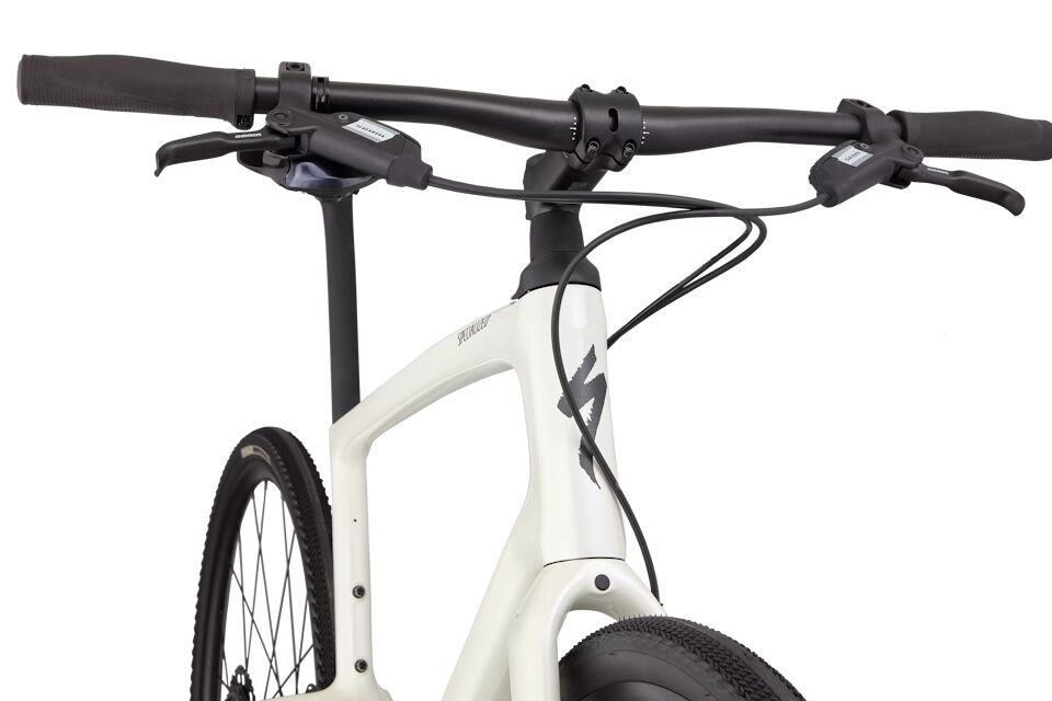 Concepto Specialized: confort y eficiencia mediante diseño de cuadro (Compliance Junction) y filtrado de vibraciones en la dirección (Future Shock), con geometría optimizada por talla (Rider-First Engineered).